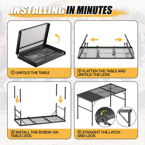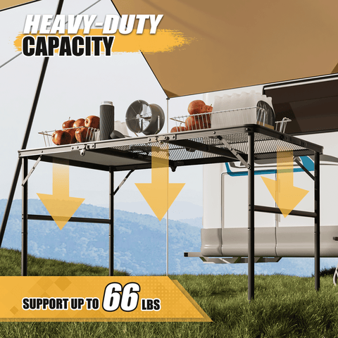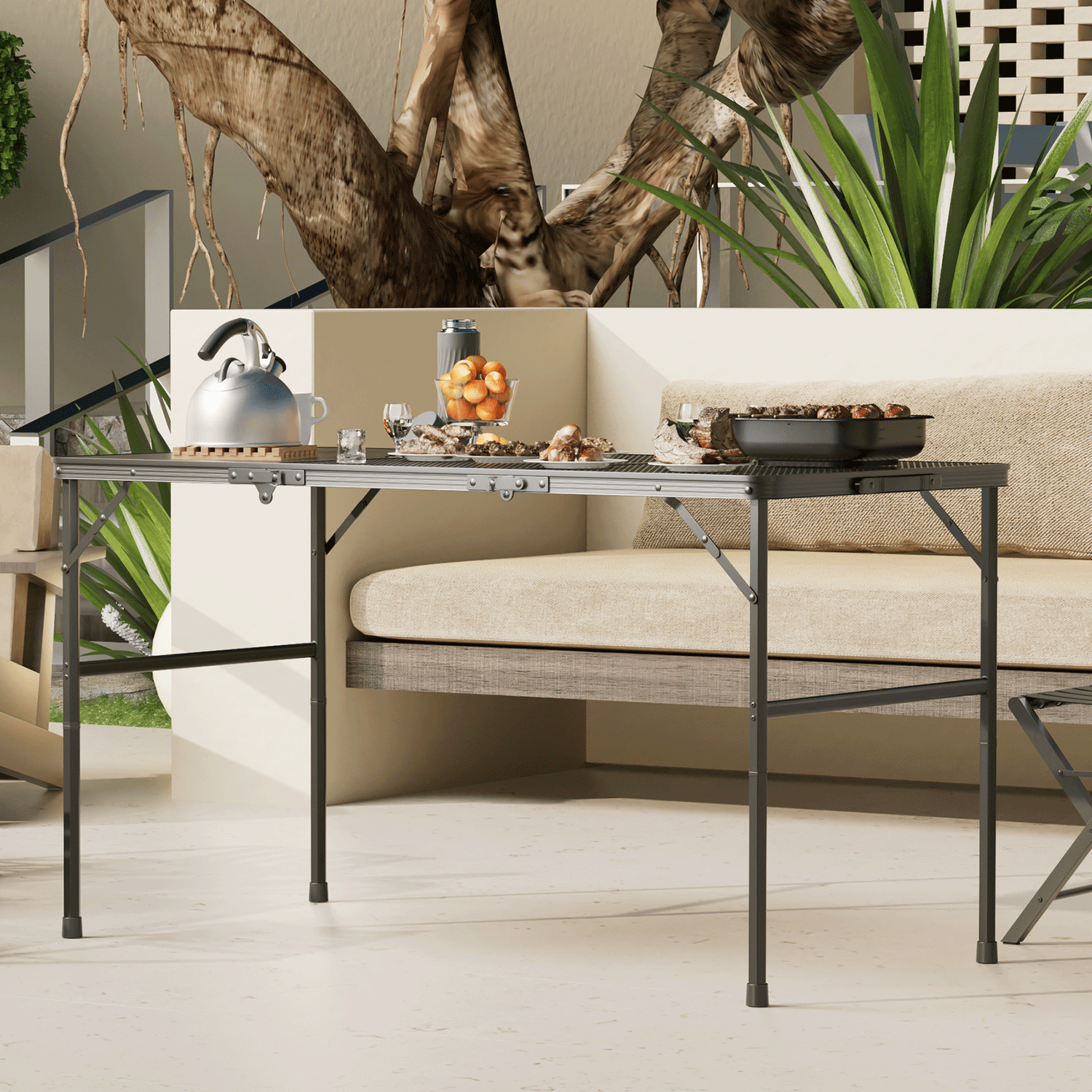 Grill Table 66 lbs Capacity - (L)47.3in. (W)23.8in. (H)26.3in. - 2 height adjustments: 14.8in. - 26.3in. -Black