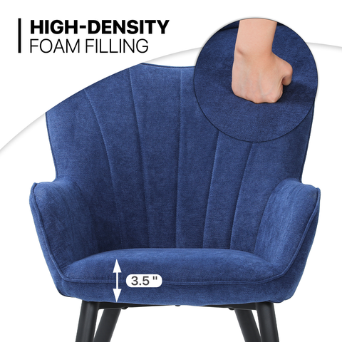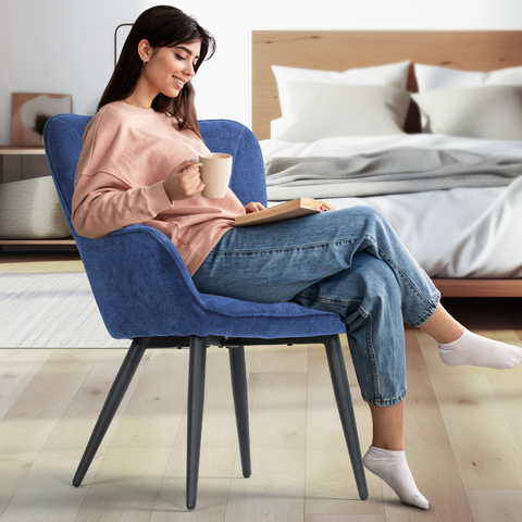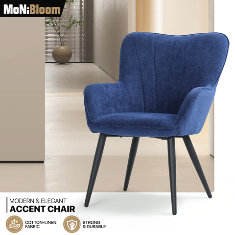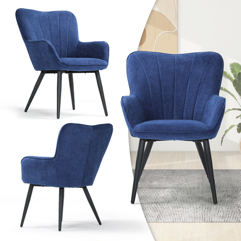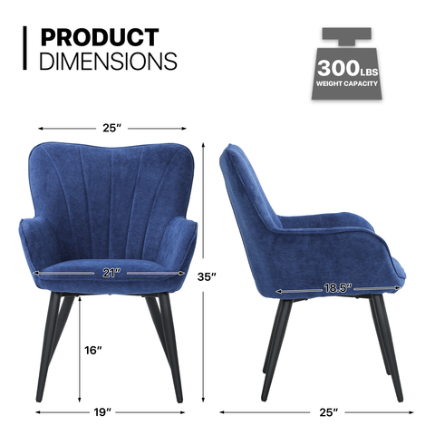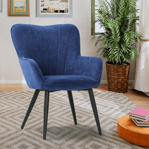 Accent Chair 300 lbs Capacity - Shell Shape - Cotton-linen - (L)26.5in. (W)25.0in. (H)35.0in. - Navy Blue