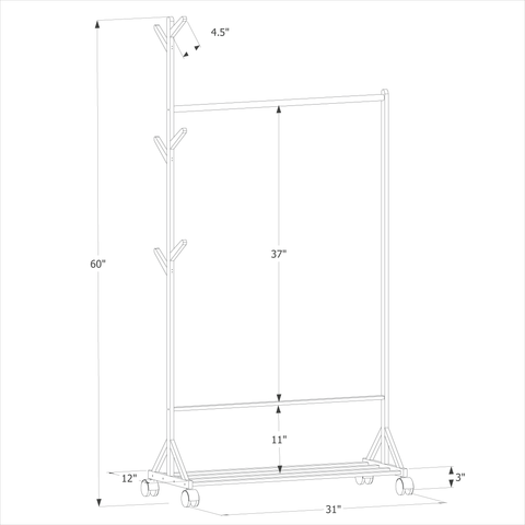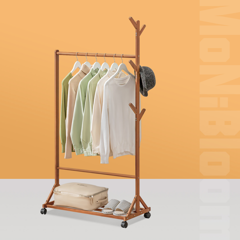 The layer below is convenient for your shoes, slippers, or storage bags. Founded atop a four-wheel rolling base, it can easily be moved throughout your master suite as you're getting ready. All this makes this rack a piece of practical and beautiful furniture in your bedroom, if you want to add some fresh looks to your home, just try this clothes rack.