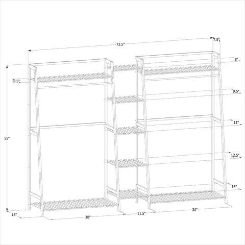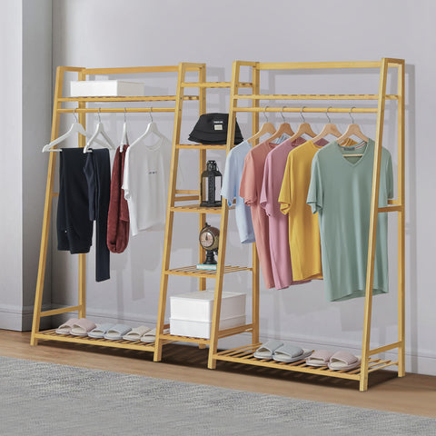 Trapezoid Garment Cabinet Clothes Organizer - Double Rack - Natural