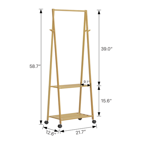 Humanization design makes this furniture beautiful and practical: Hanging up your clothes instead of tucked away in drawers. The layers are convenient for your towels or storage bags. Triangle shape in reinforced design to make sure its large capacity and storage ability. Founded atop a four-wheel rolling base, it can easily be moved throughout your master suite as you're getting ready. Simple design and clean lines give this rack a concise style, but multifunction usage for the living room or bedroom.