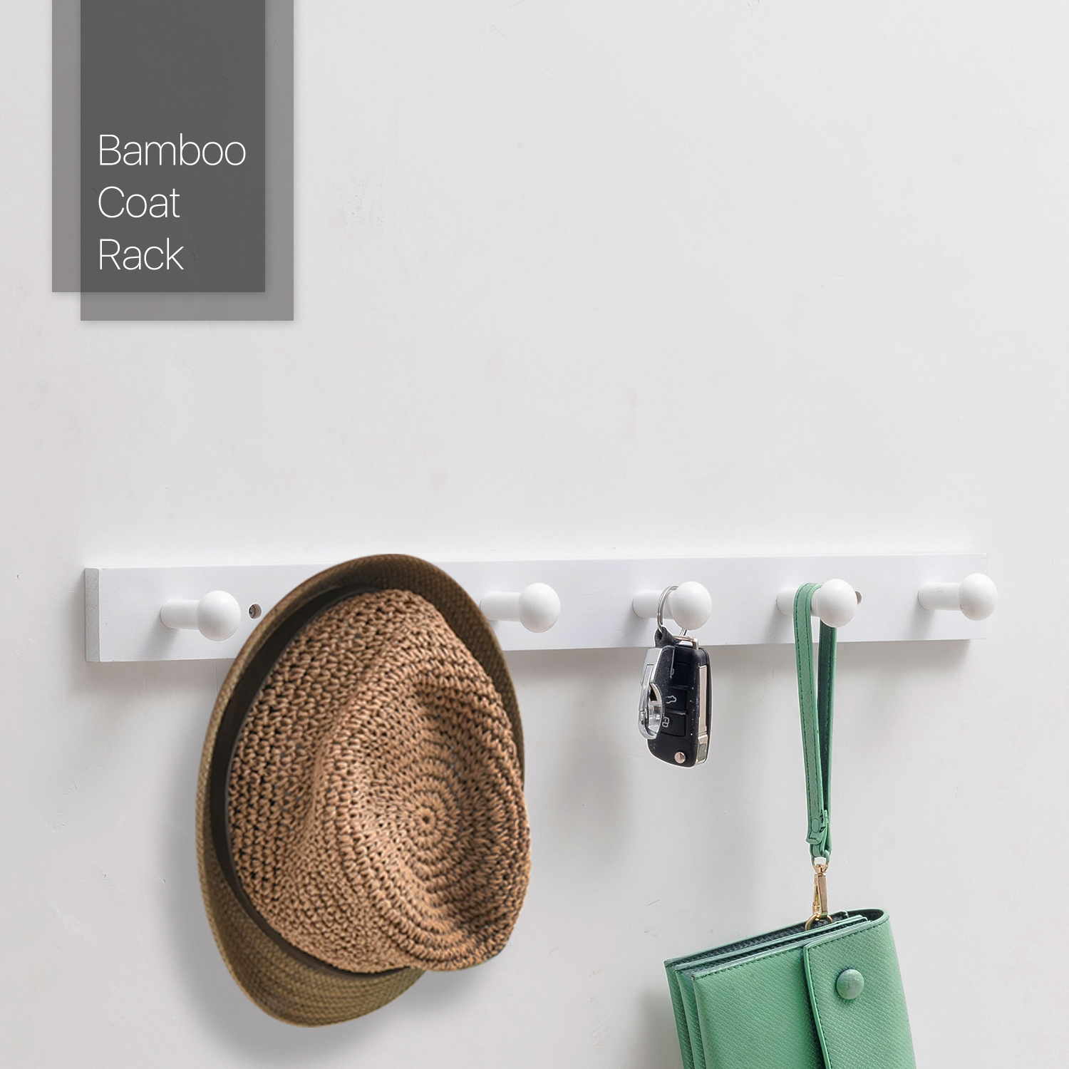 A perfect solution for handing your daily items like hats, handbags, scarfs, keys even dog leashes. This wall mounted coat rack is made of premium bamboo to ensure its carry ability and large capacity.