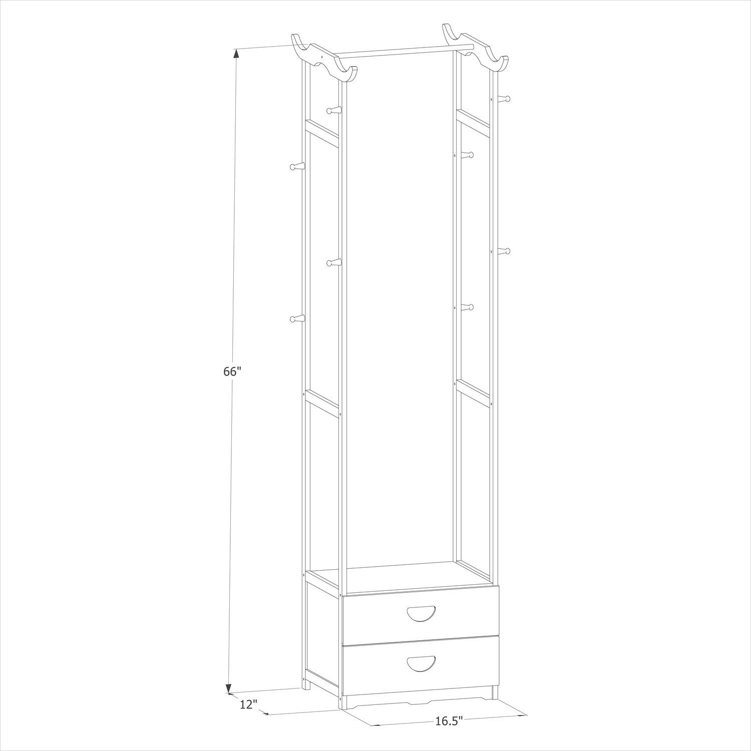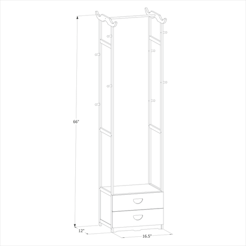 Humanization design makes this furniture beautiful and practical: Hanging up your clothes instead of tucked away in drawers. The bars beside are a handy place to hang your hats, handbags, or scarves. Two drawers below provide an enclosed space for your underwear. You can also put some fabric storage bags with daily items in them on the drawers to make full use of this rack. Square shape in reinforced design to make sure its large capacity and storage ability. Simple design and clean lines give this rack a concise style, but multifunction usage for the living room or bedroom.