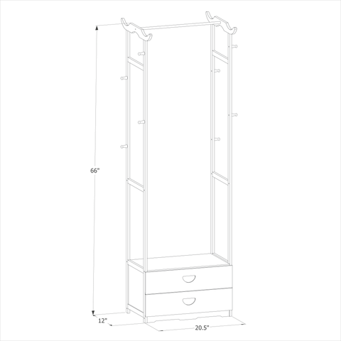 Humanization design makes this furniture beautiful and practical: Hanging up your clothes instead of tucked away in drawers. The bars beside are a handy place to hang your hats, handbags, or scarves. Two drawers below provide an enclosed space for your underwear. You can also put some fabric storage bags with daily items in them on the drawers to make full use of this rack. Square shape in reinforced design to make sure its large capacity and storage ability. Simple design and clean lines give this rack a concise style, but multifunction usage for the living room or bedroom.