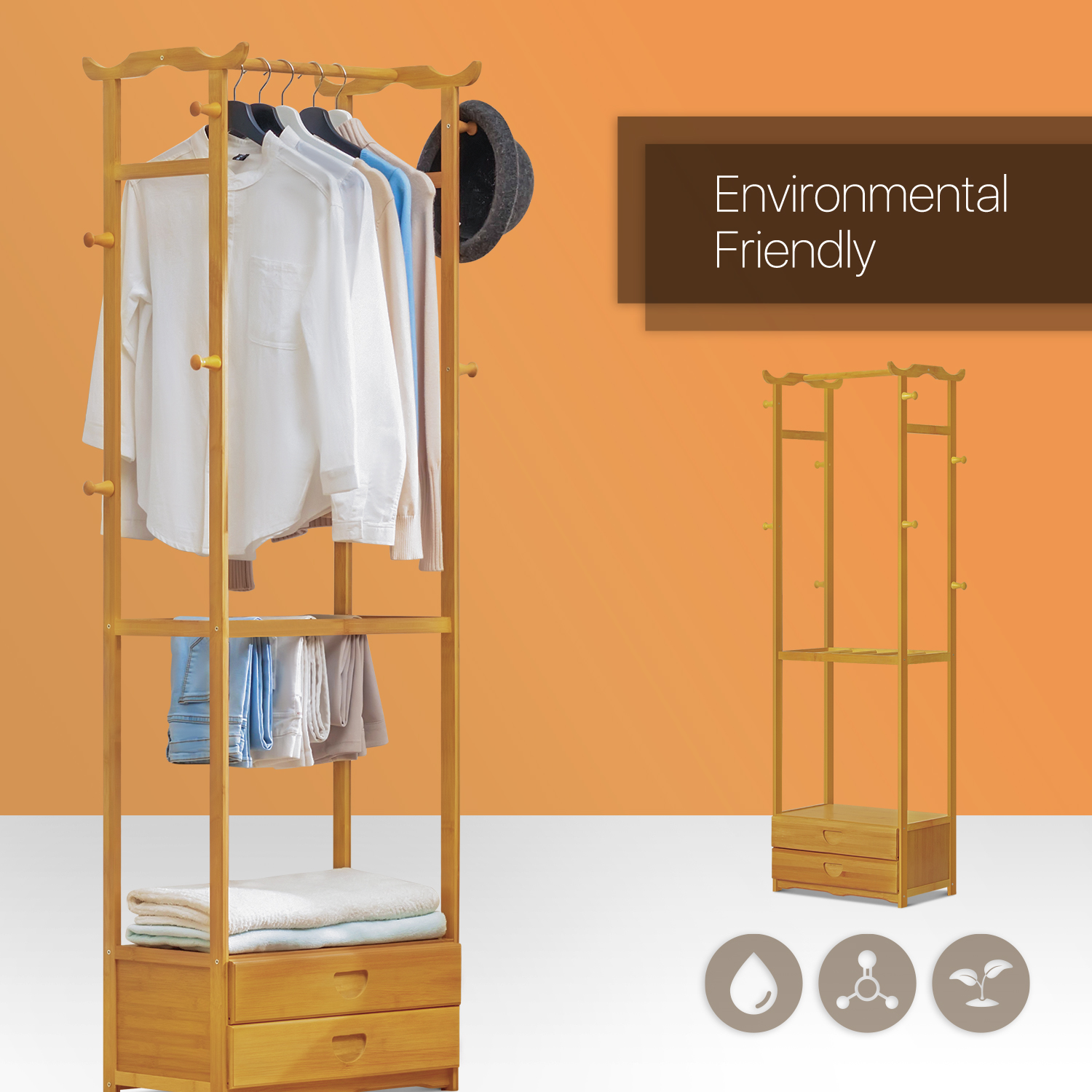 Double Drawer Garment Hanging Stand - with Pants Rack - Natural