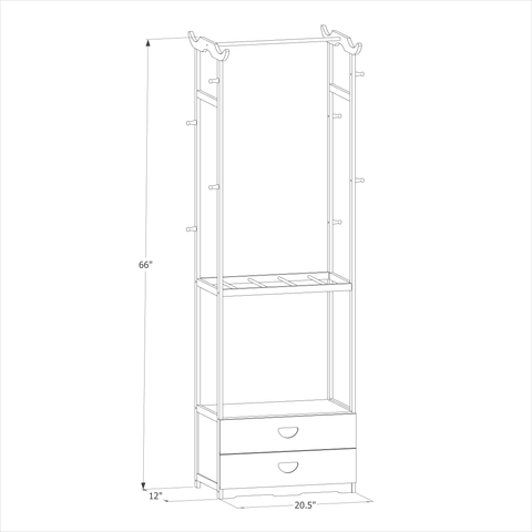 Humanization design makes this furniture beautiful and practical: Hanging up your clothes instead of tucked away in drawers. The bars beside are a handy place to hang your hats, handbags, or scarves. Two drawers below provide an enclosed space for your underwear. You can also put some fabric storage bags with daily items in them on the drawers to make full use of this rack. Square shape in reinforced design to make sure its large capacity and storage ability. Simple design and clean lines give this rack a concise style, but multifunction usage for the living room or bedroom.