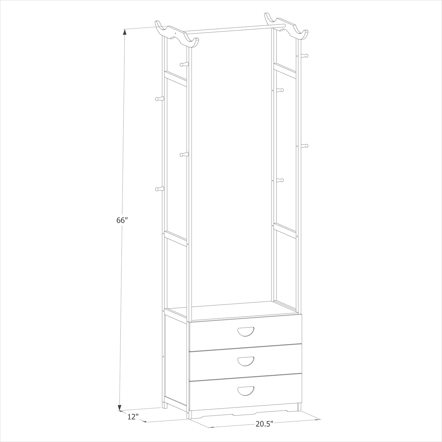 Humanization design makes this furniture beautiful and practical: Hanging up your clothes instead of tucked away in drawers. The bars beside are a handy place to hang your hats, handbags, or scarves. Three drawers below provide an enclosed space for your underwear. You can also put some fabric storage bags with daily items in them on the drawers to make full use of this rack. Square shape in reinforced design to make sure its large capacity and storage ability. Simple design and clean lines give this rack a concise style, but multifunction usage for the living room or bedroom.