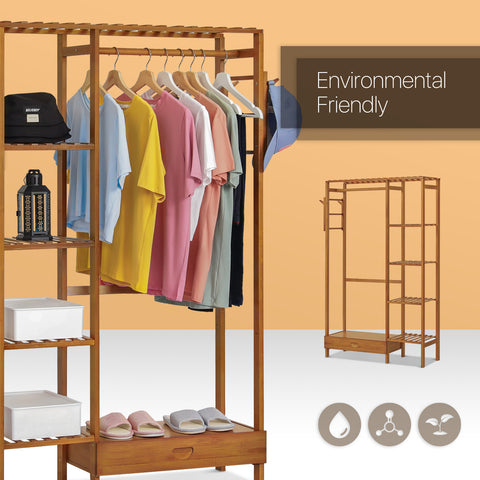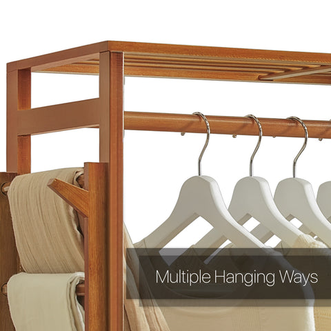 Want to tidy up your bedroom and let all your clothes collect in order? Our clothes rack built-in high-quality bamboo will give you a hand. Premium bamboo rack, considers your health problems, and water-proof surface in brown coating shows an elegant appearance.