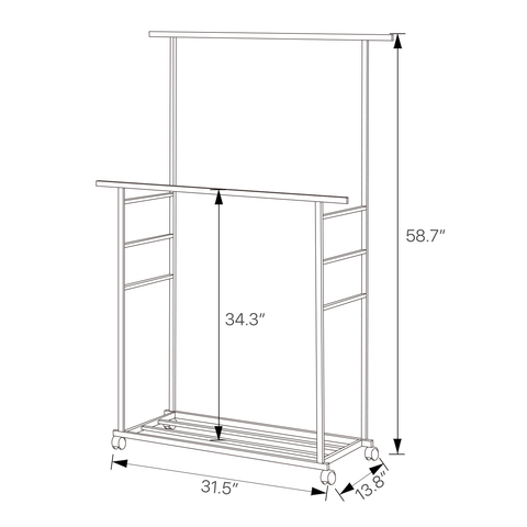 Hanging up your clothes instead of tucked away in drawers and the bars beside are a handy place to hang your towels or handbags. You can also place your slippers or storage boxes on the bottom layer to make full use of this shelf. Founded atop a four-wheel rolling base, it can easily be moved throughout your master suite. Simple design and clean lines give this rack a concise style, but multifunction usage in the bedroom.