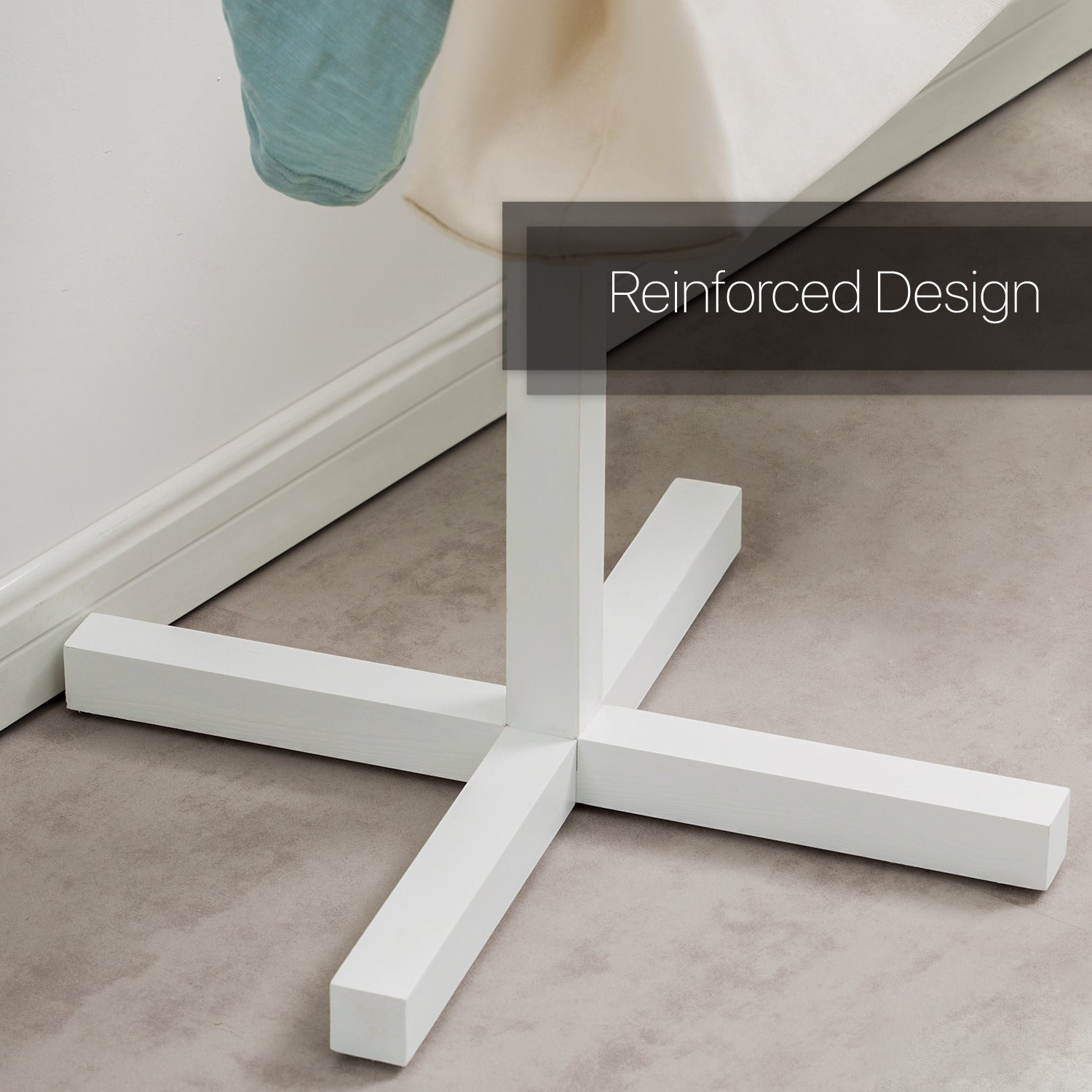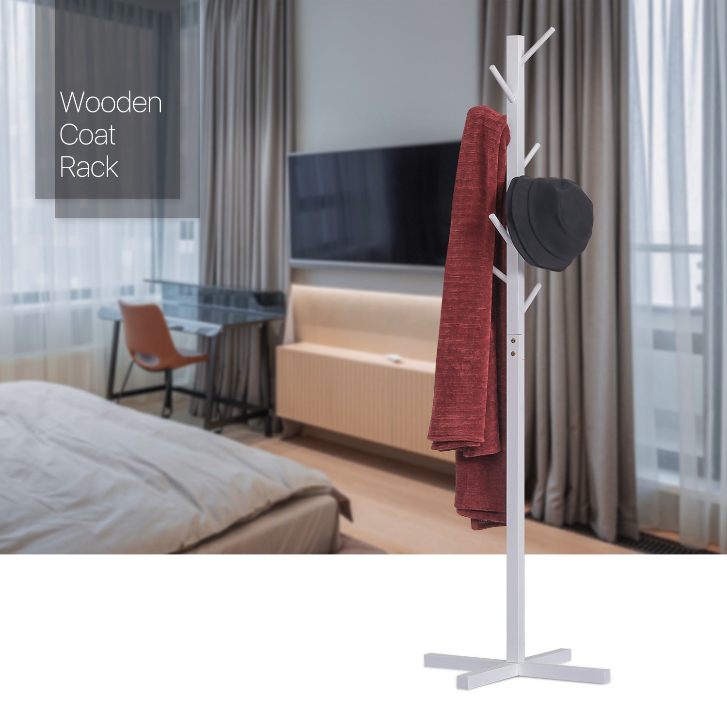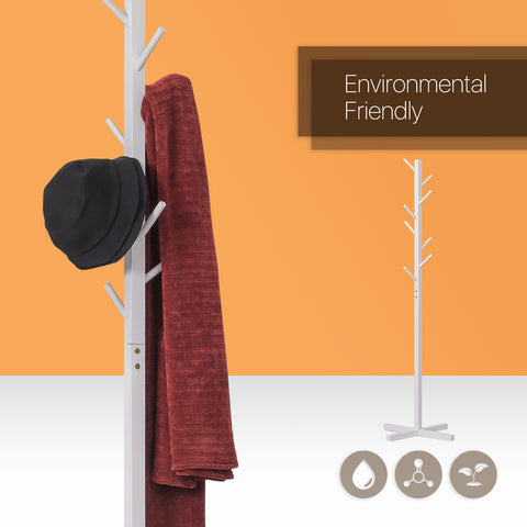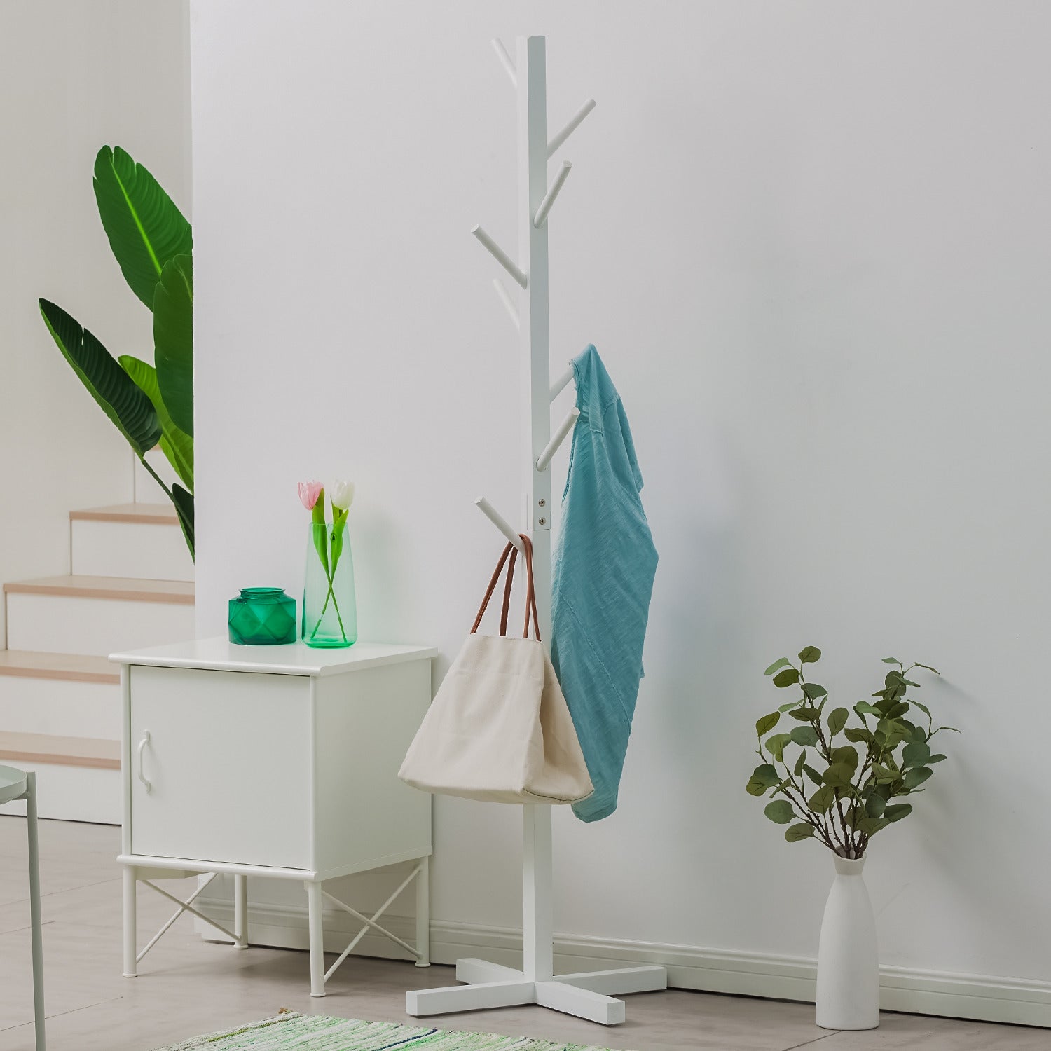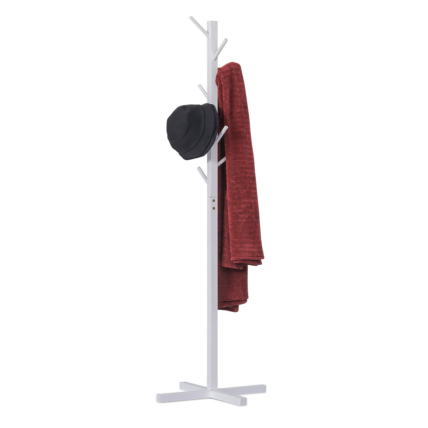 With this freestanding coat rack, you can easily find a handy place for your hats, scarves, jackets, or handbags. Solid wood in a white surface coating shows a concise design with an elegant appearance.
