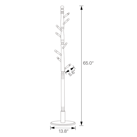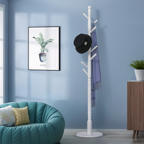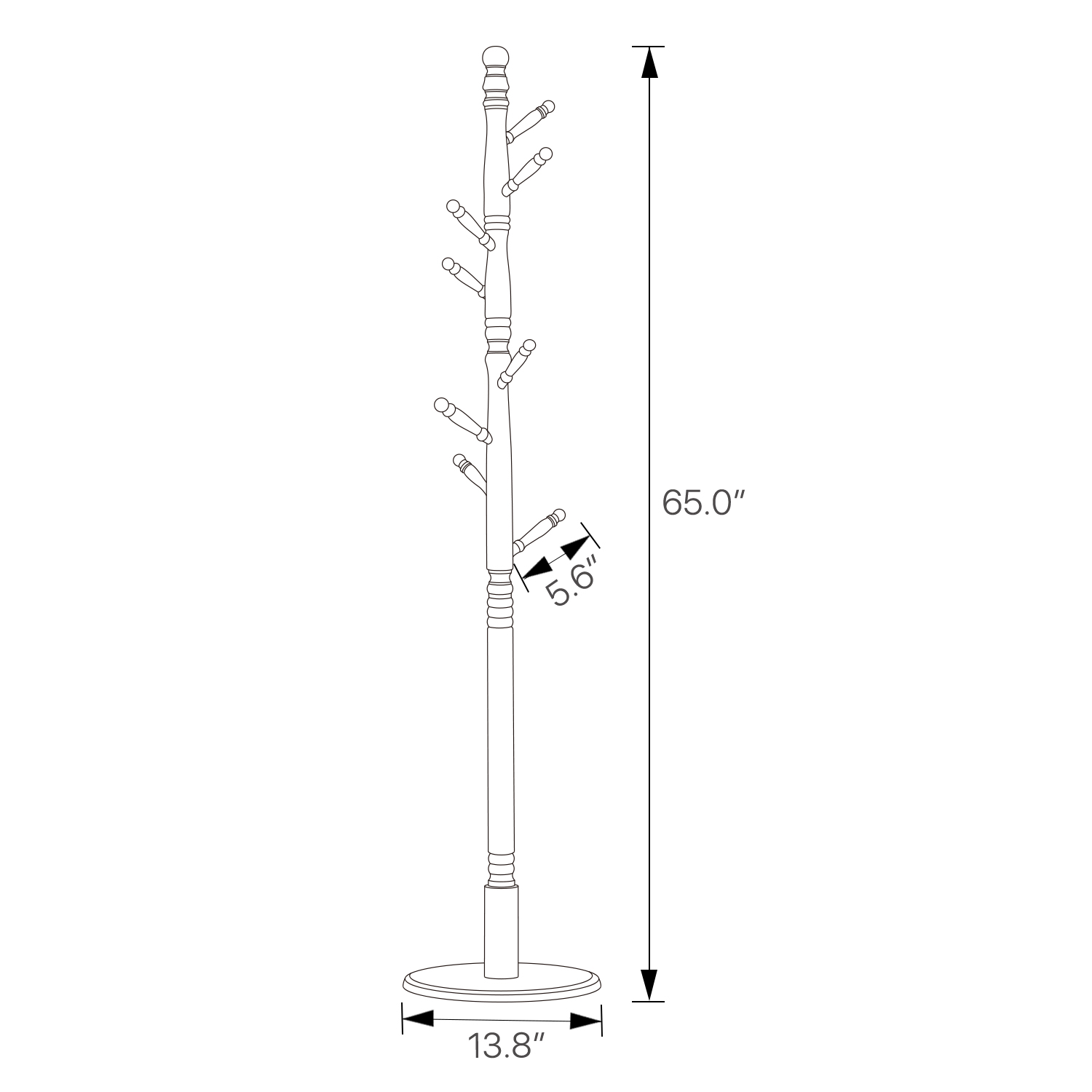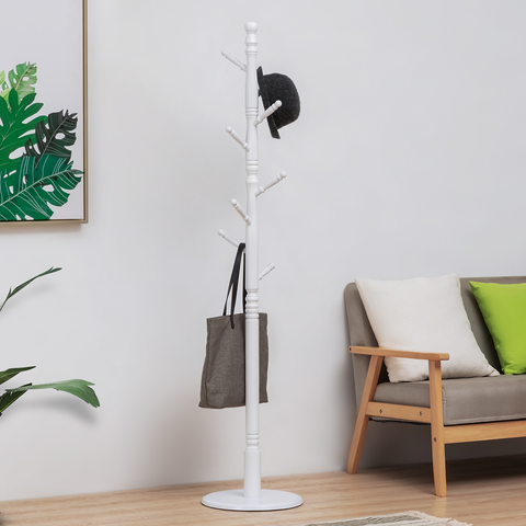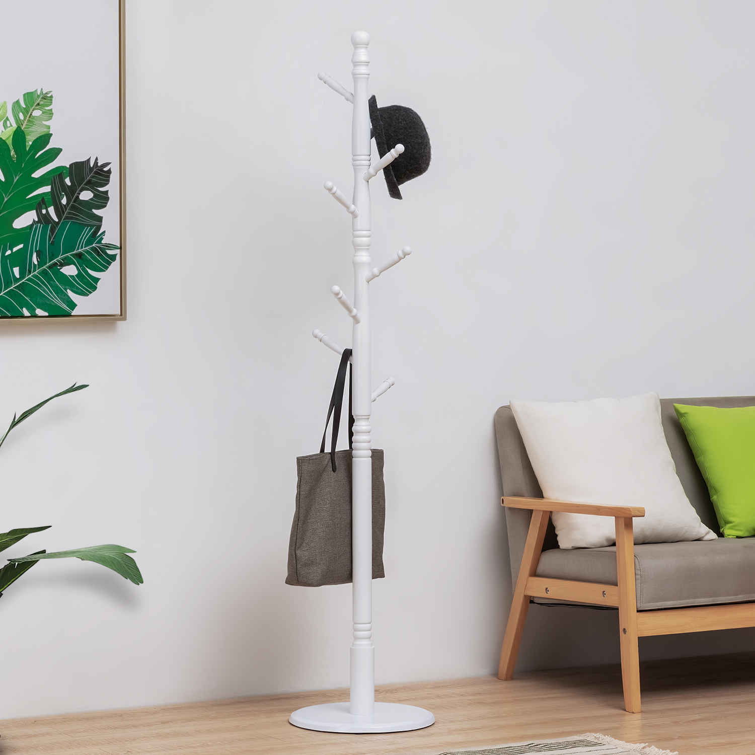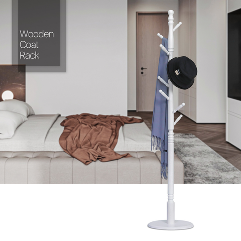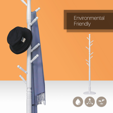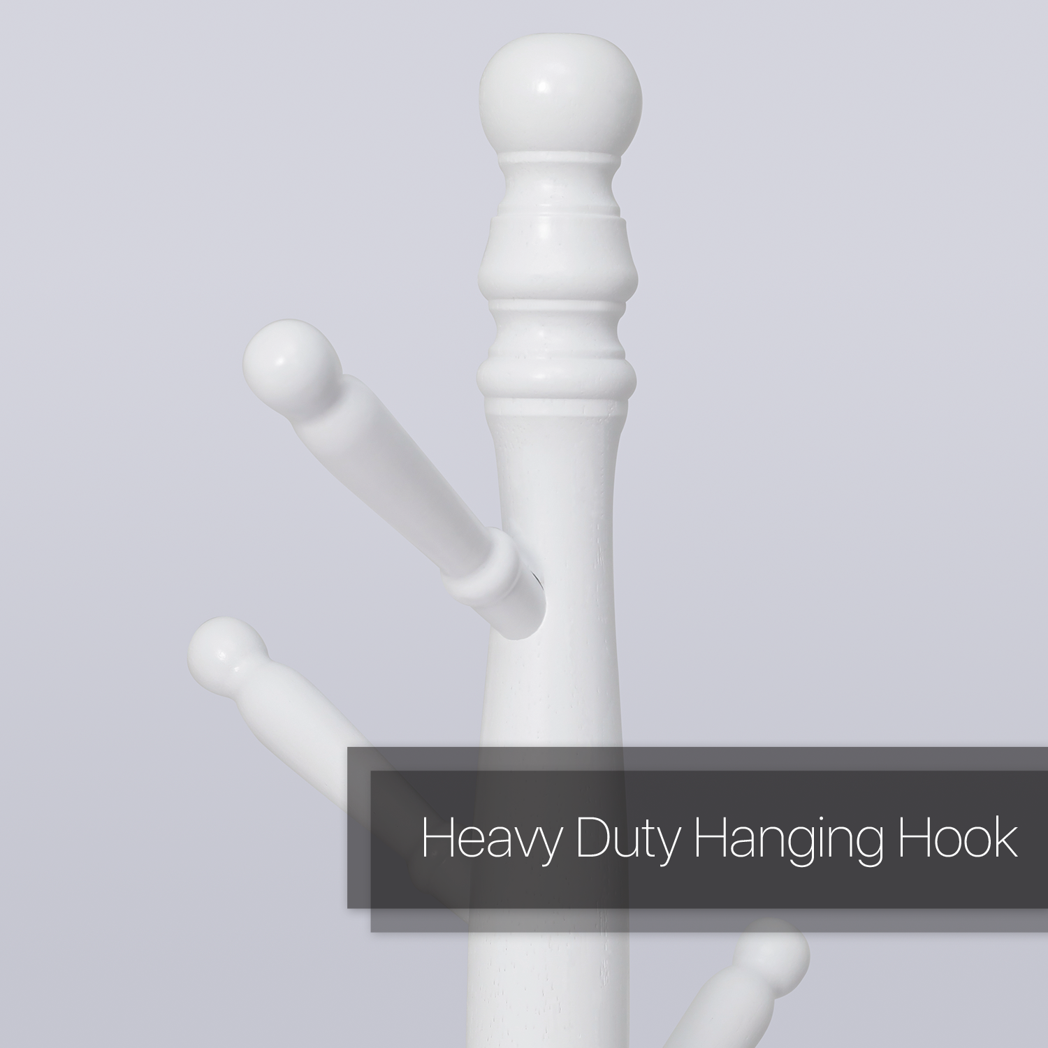 With this freestanding coat rack, you can easily find a handy place for your hats, scarves, jackets, or handbags. Solid wood in a white surface coating shows a concise design with an elegant appearance.