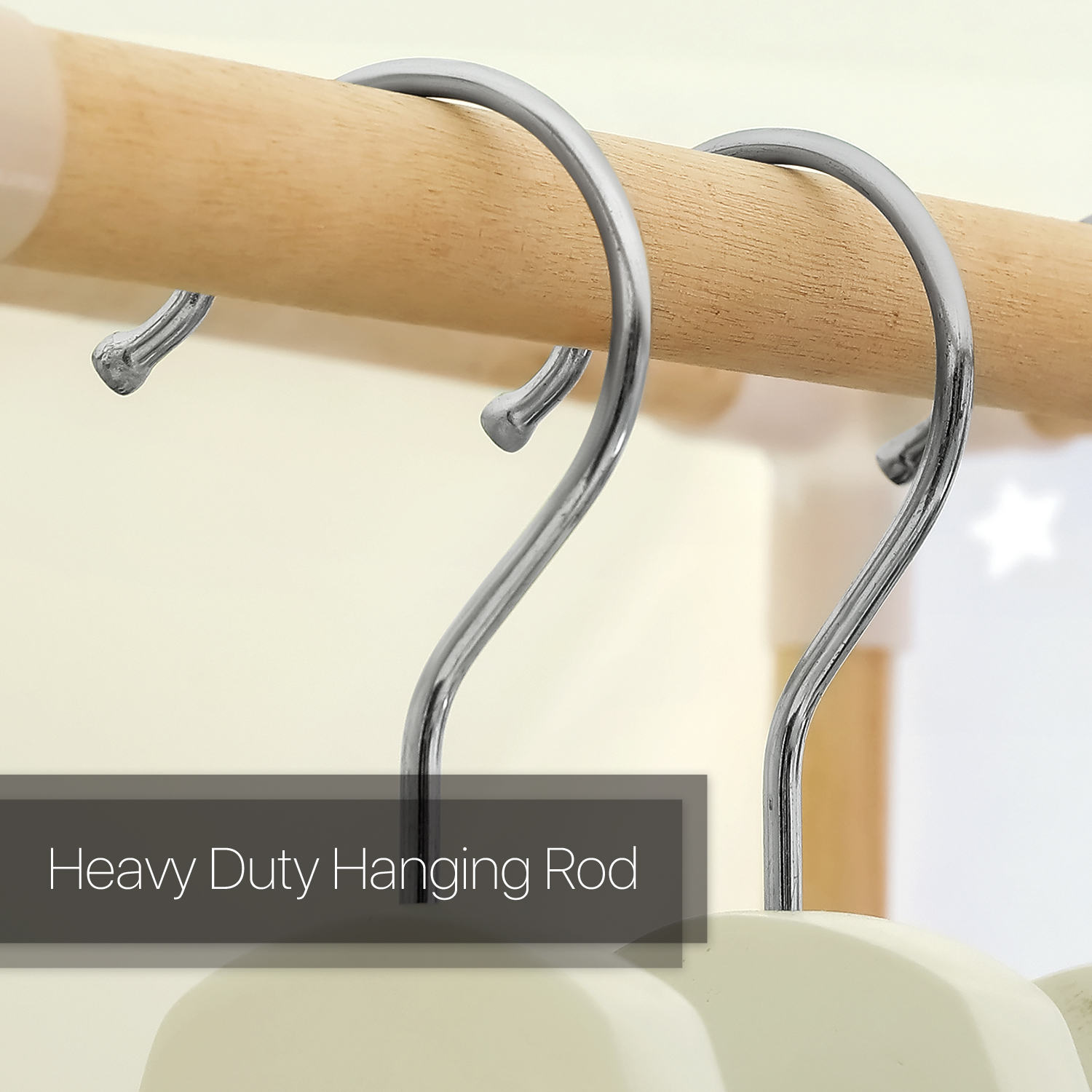Different layers ensure their large capacity and provide enough space for your towels, pillows, and storage boxes. You can hang your clothes up instead of tucked away in a drawer. Solid wood makes this shelf stable and large load-bearing capacity, you can place your travel bags and suitcase on the top space.