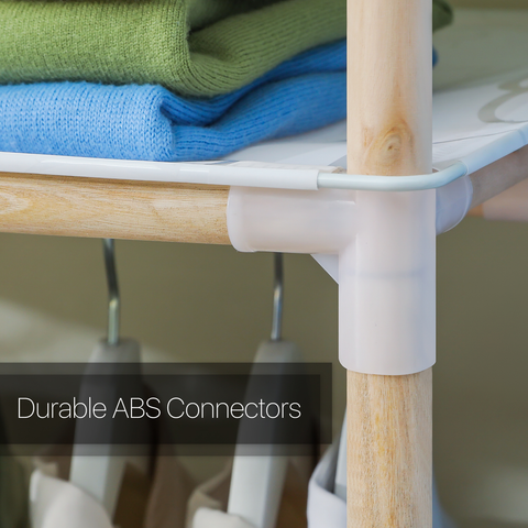 Different layers ensure their large capacity and provide enough space for your towels, pillows, and storage boxes. You can hang your clothes up instead of tucked away in a drawer. Solid wood makes this shelf stable and large load-bearing capacity, you can place your travel bags and suitcase on the top space.