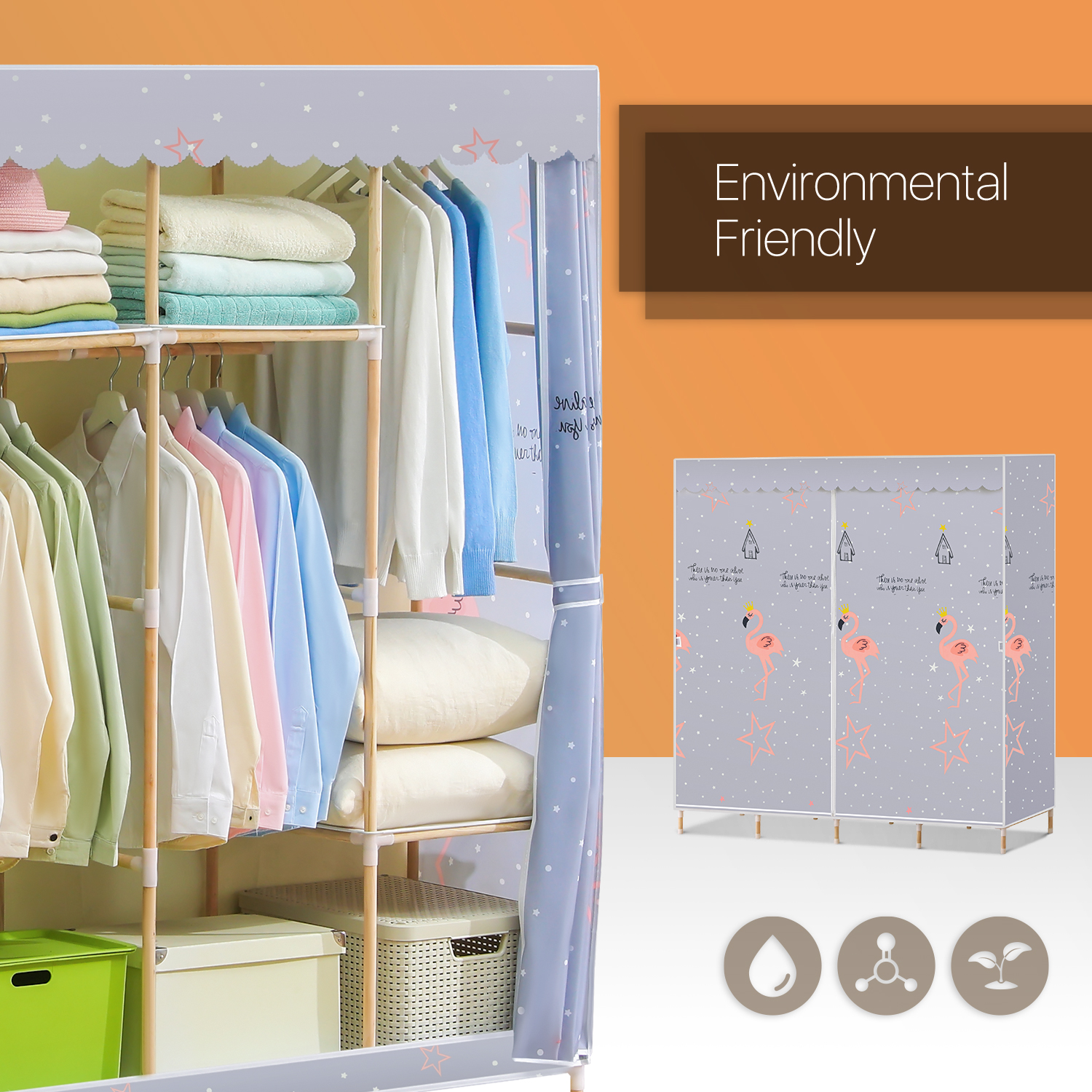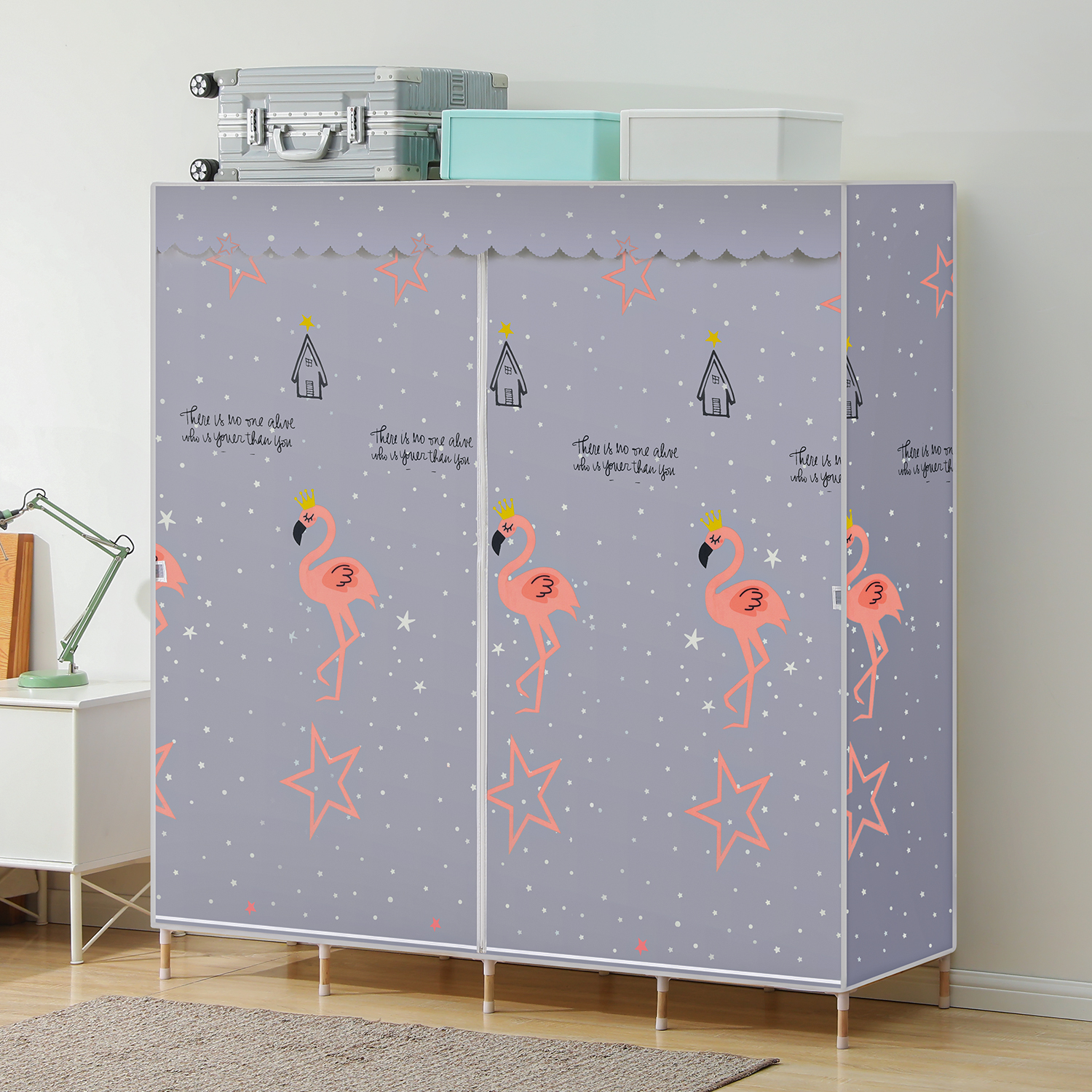 Fabric Portable Wardrobe Closet Organizer - Flamingo Patten