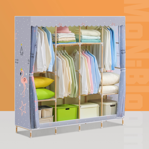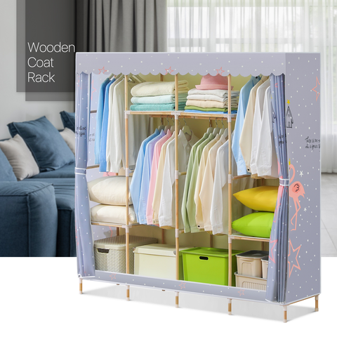 Want to place your clothes and bedding in another way, just try our beautiful clothes shelf. Compared to a traditional wardrobe, this wooden clothes organizer aims for your comfortable life in a concise style. Fabric cover with the pattern of white spots adds a fresh look to your bedroom, also prevents the dust from dropping onto your items.