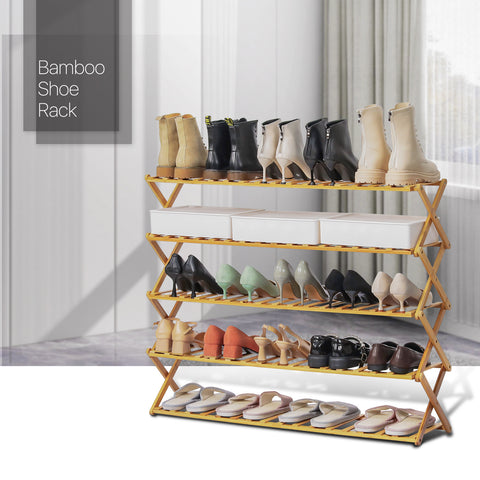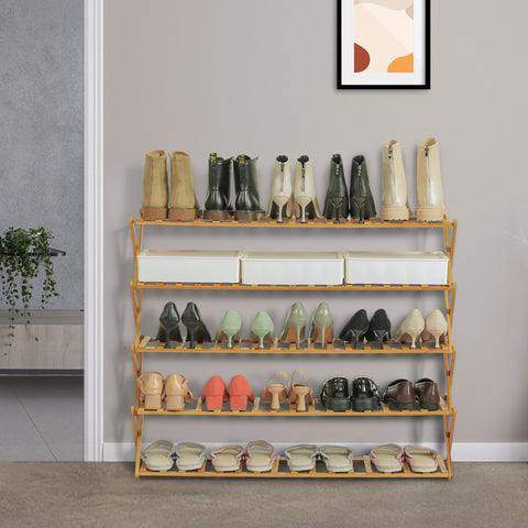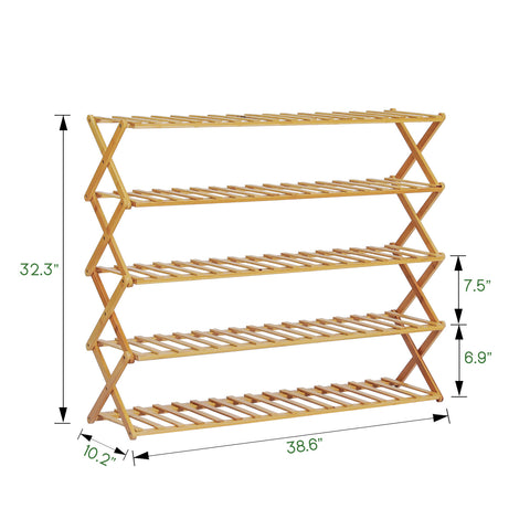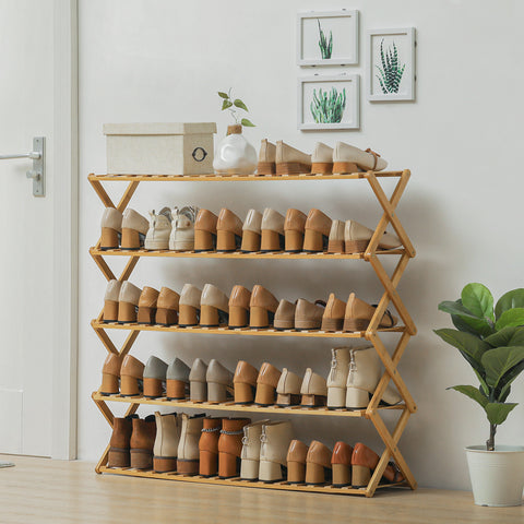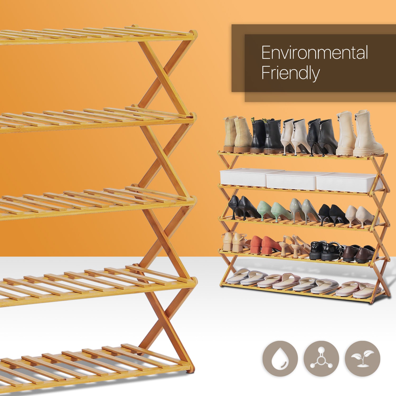 Foldable Multifunctional Shoe Rack Organizer - 5 Tier - Natural