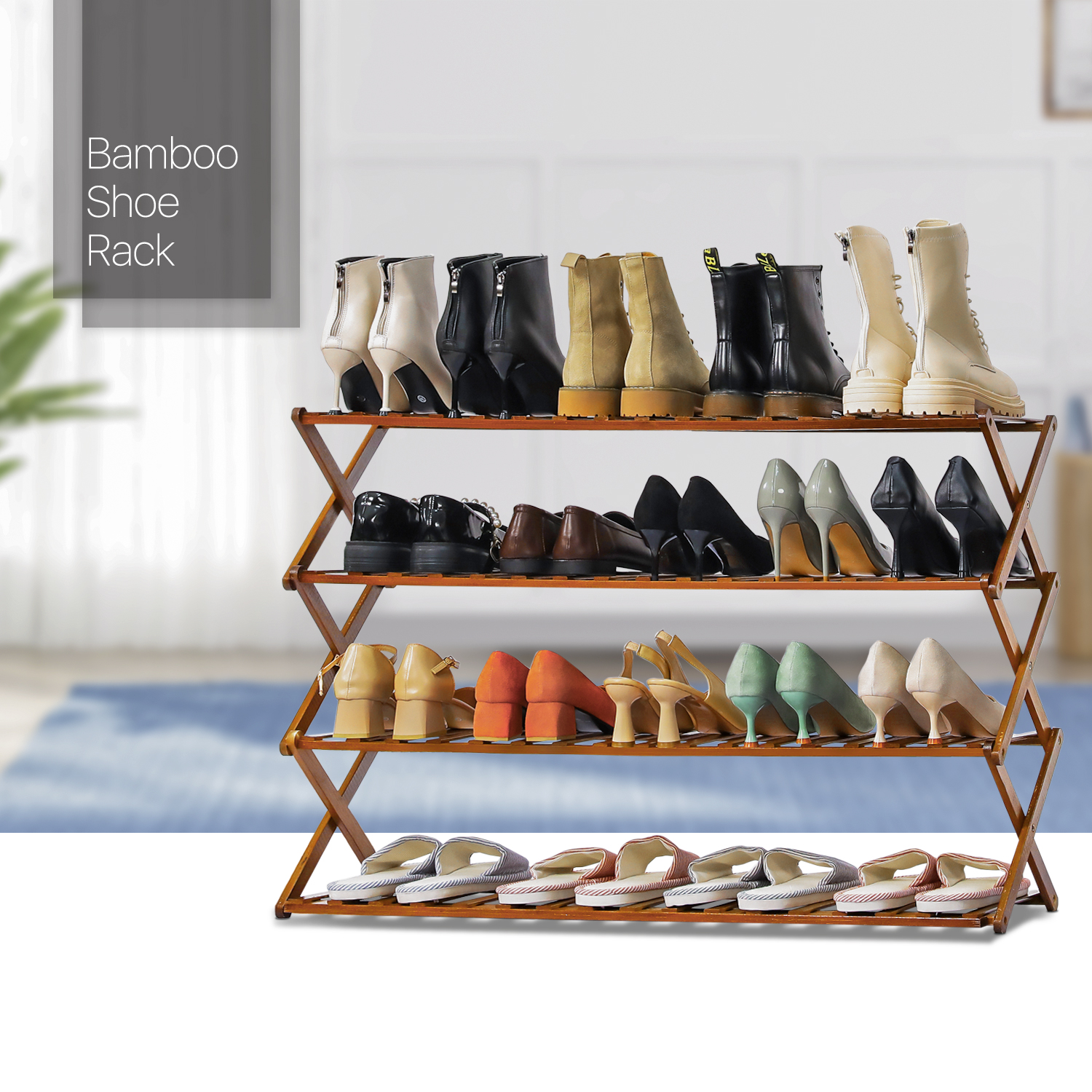 Foldable Multifunctional Shoe Rack Organizer - 4 Tier - Brown