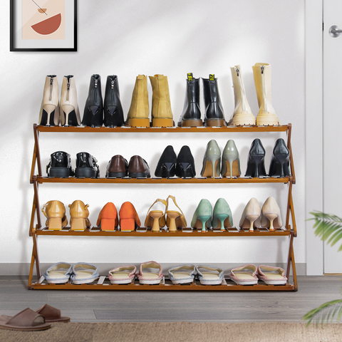 Compared to a traditional shoe cabinet, this four-layer rack only takes a little space but has enough area to place many shoes, also the stackable design can let you open it for immediate use.