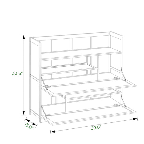 Drop Down Door Entryway Shoe Cabinet - with Boot Compartment - Brown