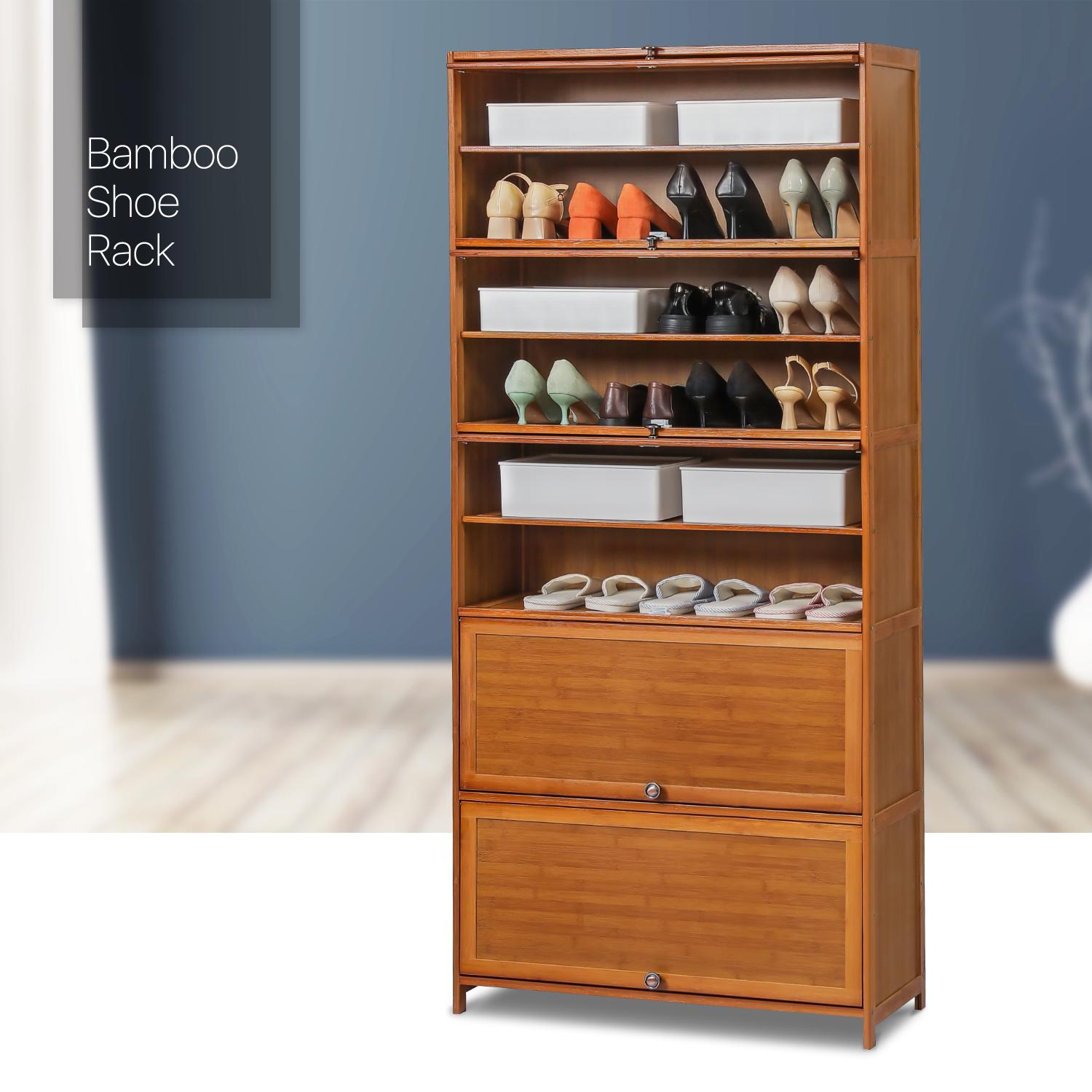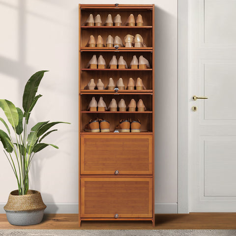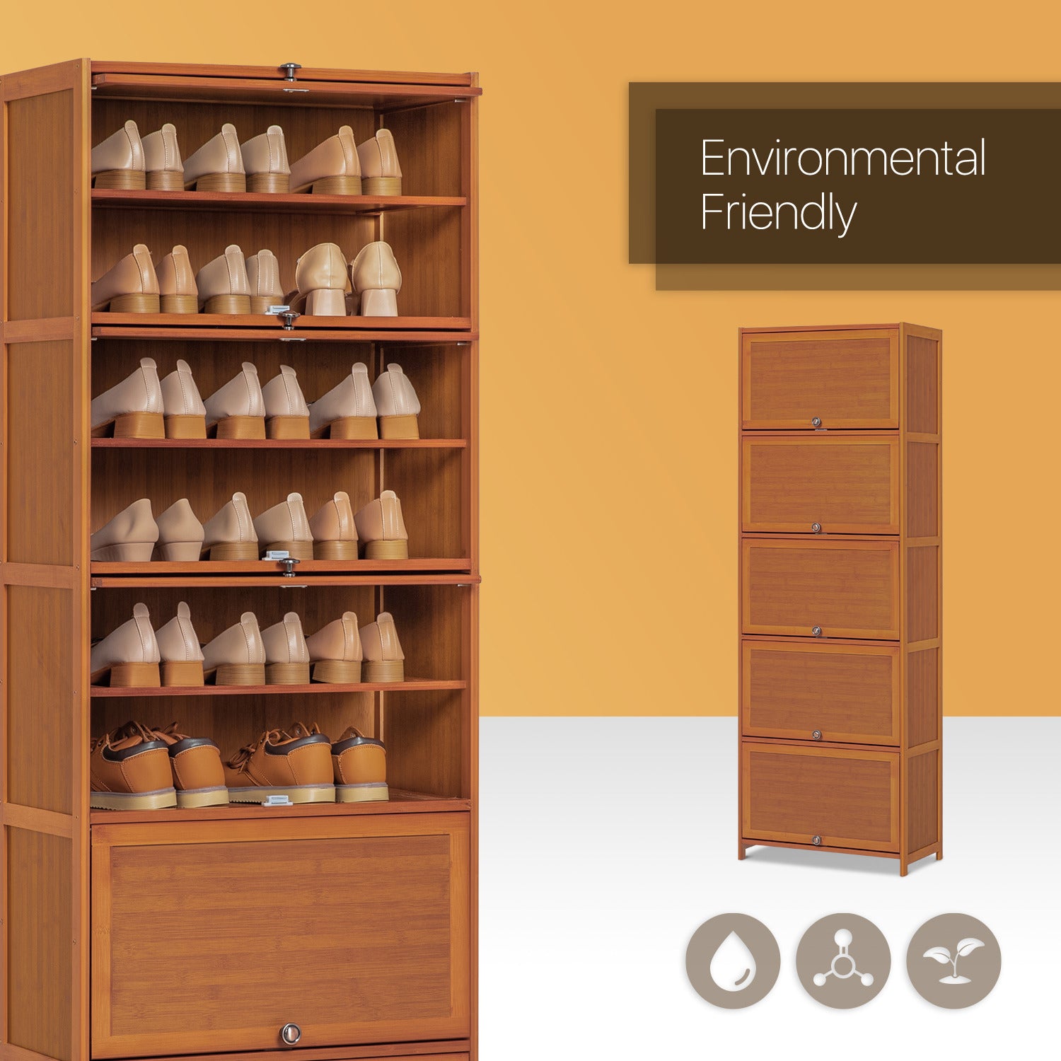 Keep your shoes away from messy and the bothering of dust. Our shoe cabinet uses premium bamboo to decrease the harm to your shoe and your life. Also, the natural surface in the water-proof coating finished makes this cabinet an easy-clean and beautiful object.