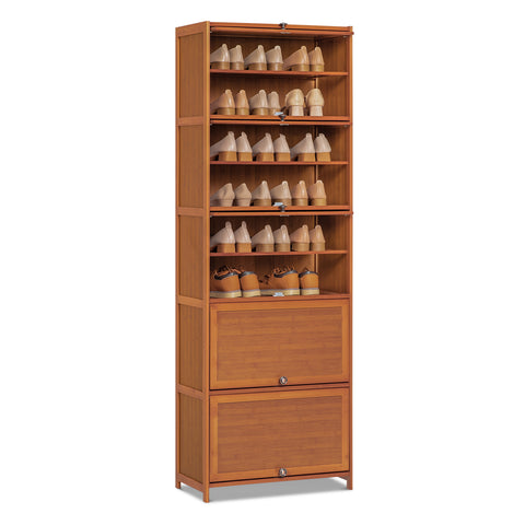 This magnetic locking door shoe cabinet with backboards provides an enclosed space to keep your shoes clean. For even more storage capacity, this multifunction cabinet full of layers is not only for your shoes, but also durable to place your storage boxes in it. Make this fresh, natural look shoe cabinet an elegant decoration in your entryway.