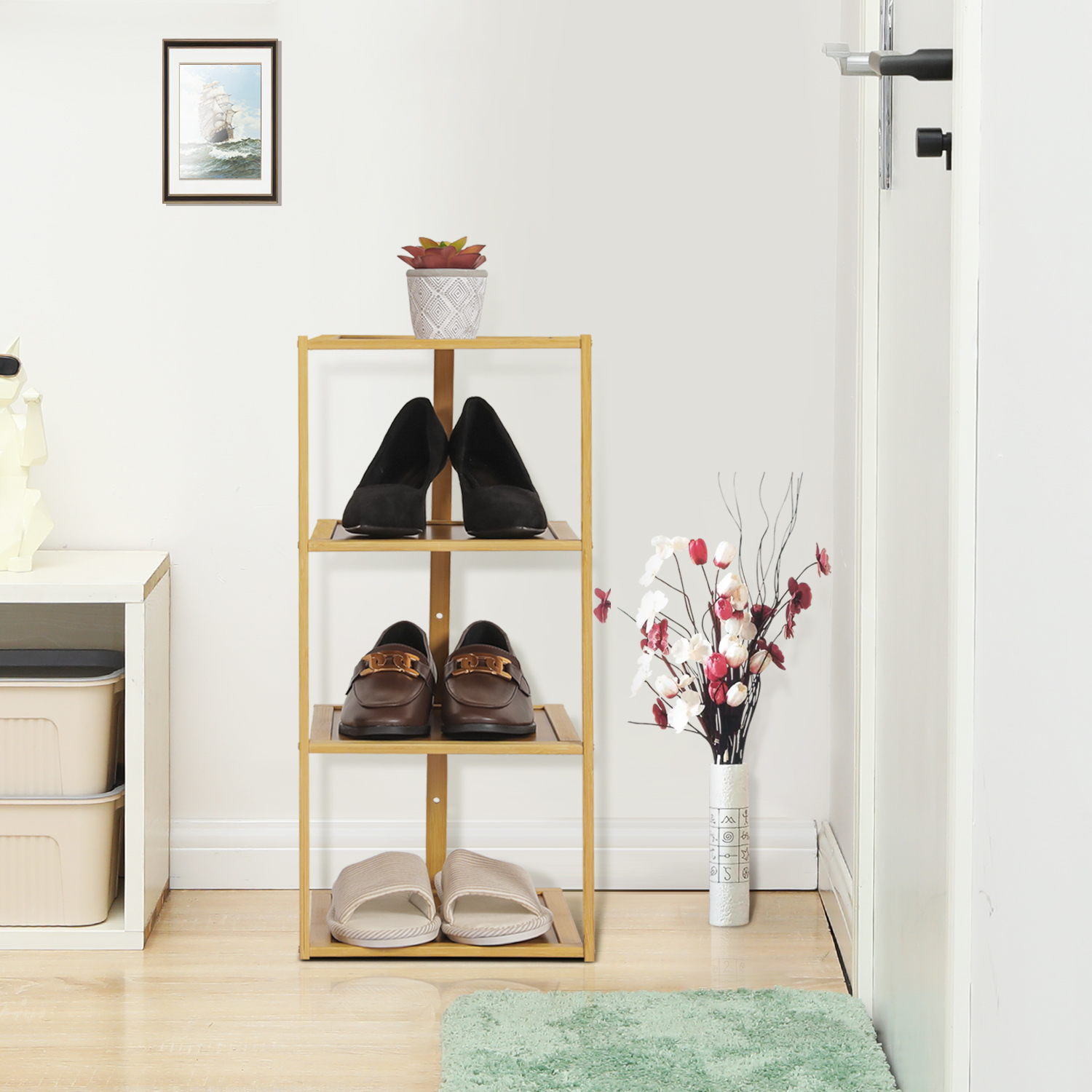 Bring your entryway a concise look and keep your daily shoes in order with this bamboo shoe rack. This rack design in clean lines is multifunctional in your home like a plant stand in the yard, a night table in your bedroom, or a storage rack in the living room.
