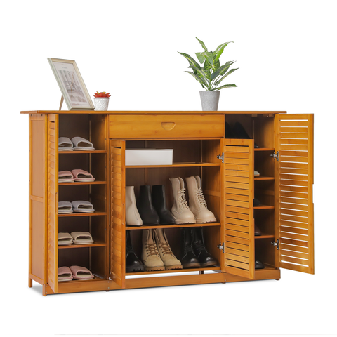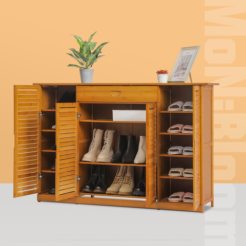 Try this shoe cabinet to keep your shoes away from messiness. Our shoe cabinet uses premium bamboo to decrease the harm to your shoe and your life. Also, the natural surface in the water-proof coating finished makes this cabinet an easy-clean and beautiful object.
