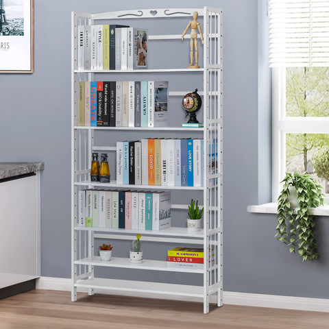 This six-decker bamboo bookshelf provides an extra platform to collect your books. White coating surface in concise design makes your room more ethereal and relaxing. Premium bamboo in the simple design shows an elegant appearance, with this stand bookshelf you can decorate your room in a personalized way.
