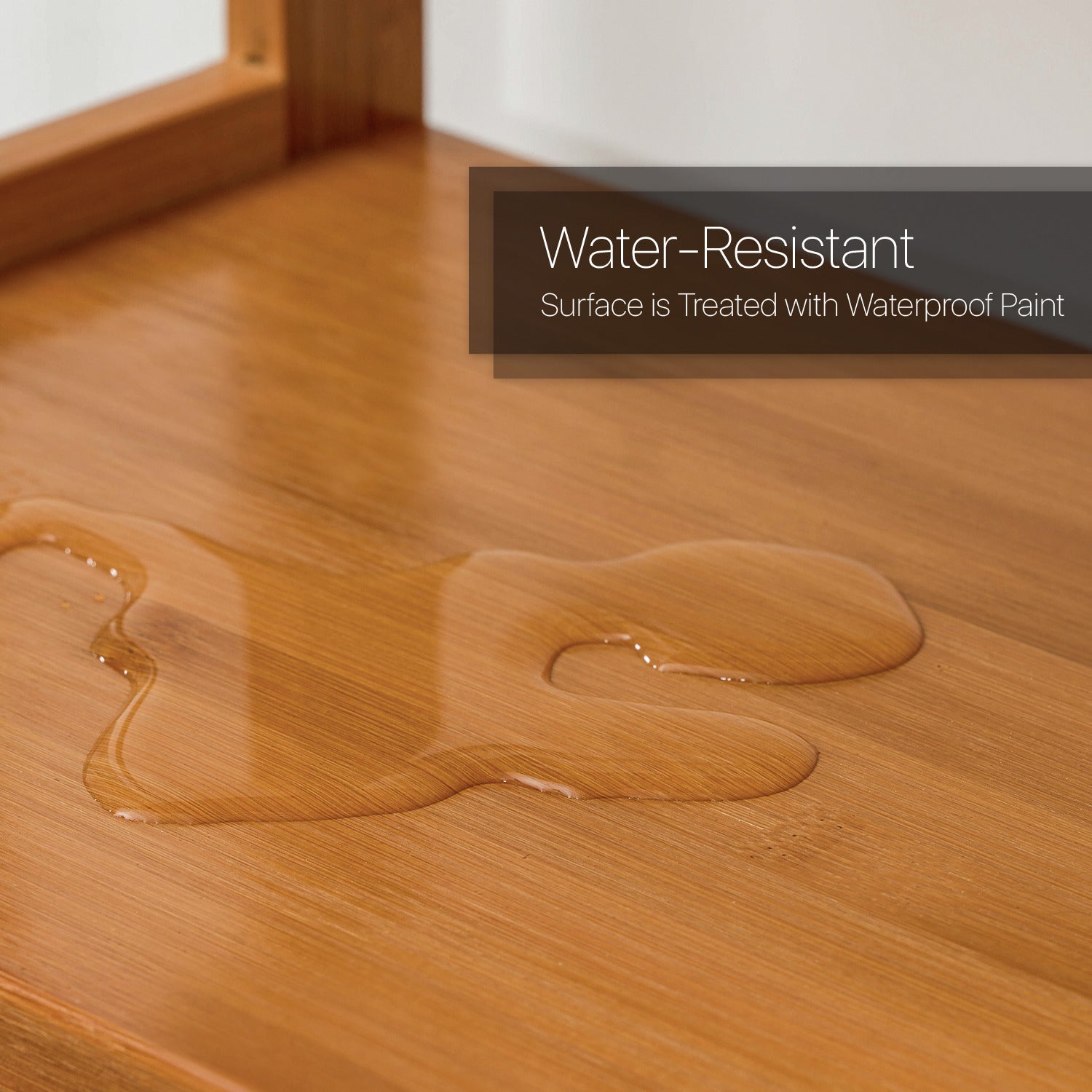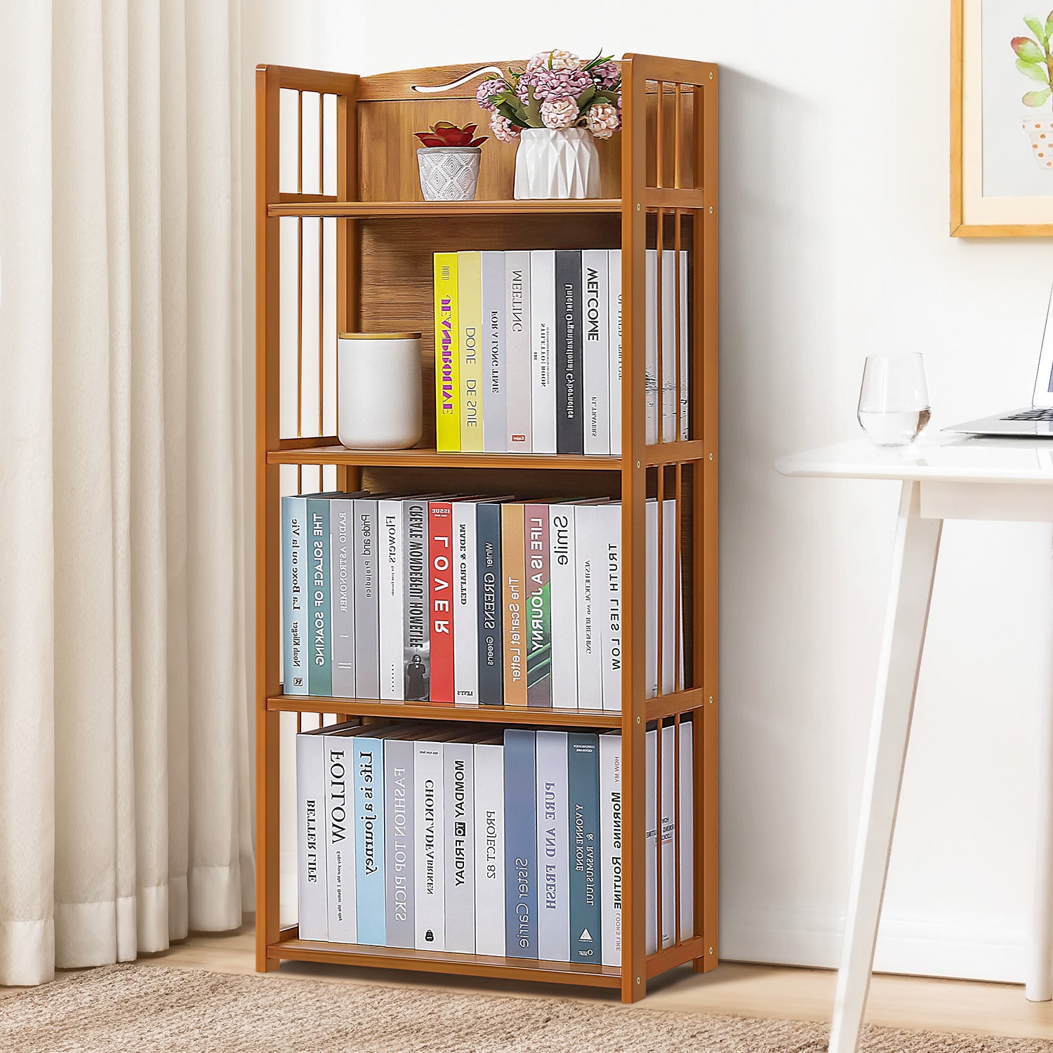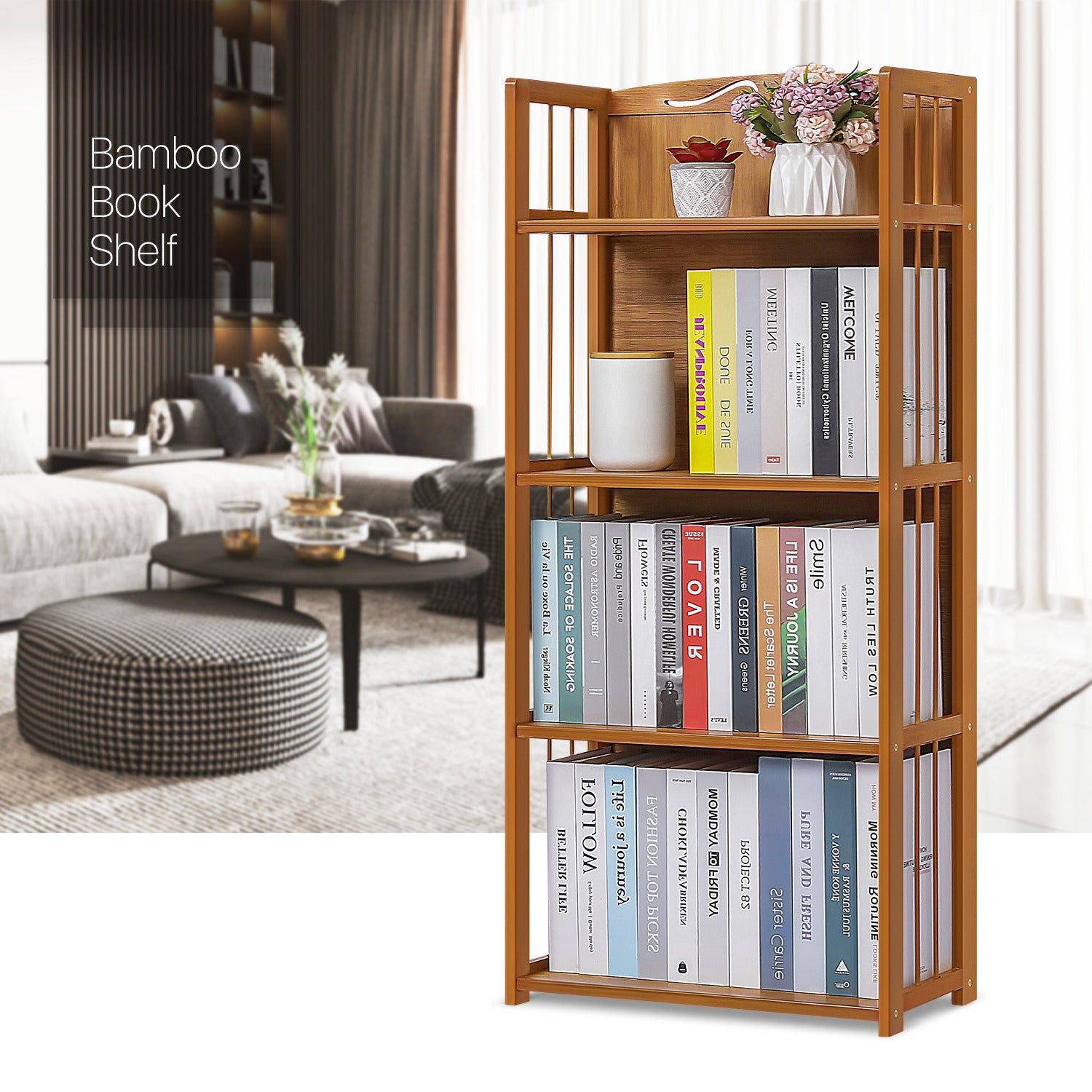 This four-decker bamboo bookshelf provides an extra platform to collect your books. Premium bamboo in natural surface shows an elegant appearance, with this stand bookshelf you can decorate your room in a personalized way.