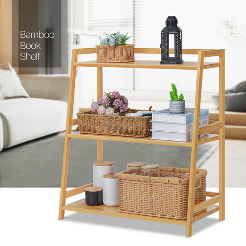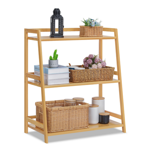 This three-decker trapezoid bookshelf provides an extra platform to collect your books. Premium bamboo in natural surface shows an elegant appearance, with this floor-standing bookshelf you can decorate your room in a personalized way.
