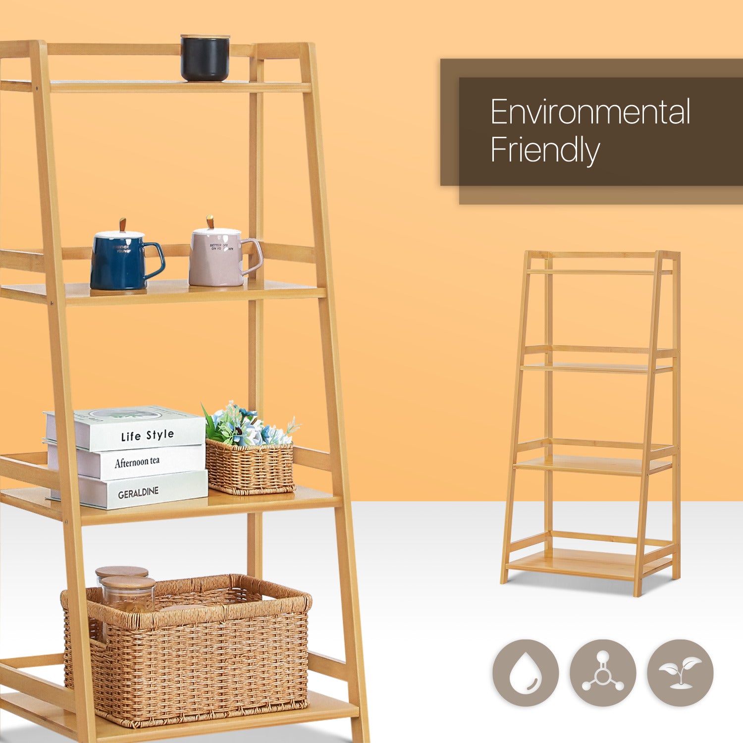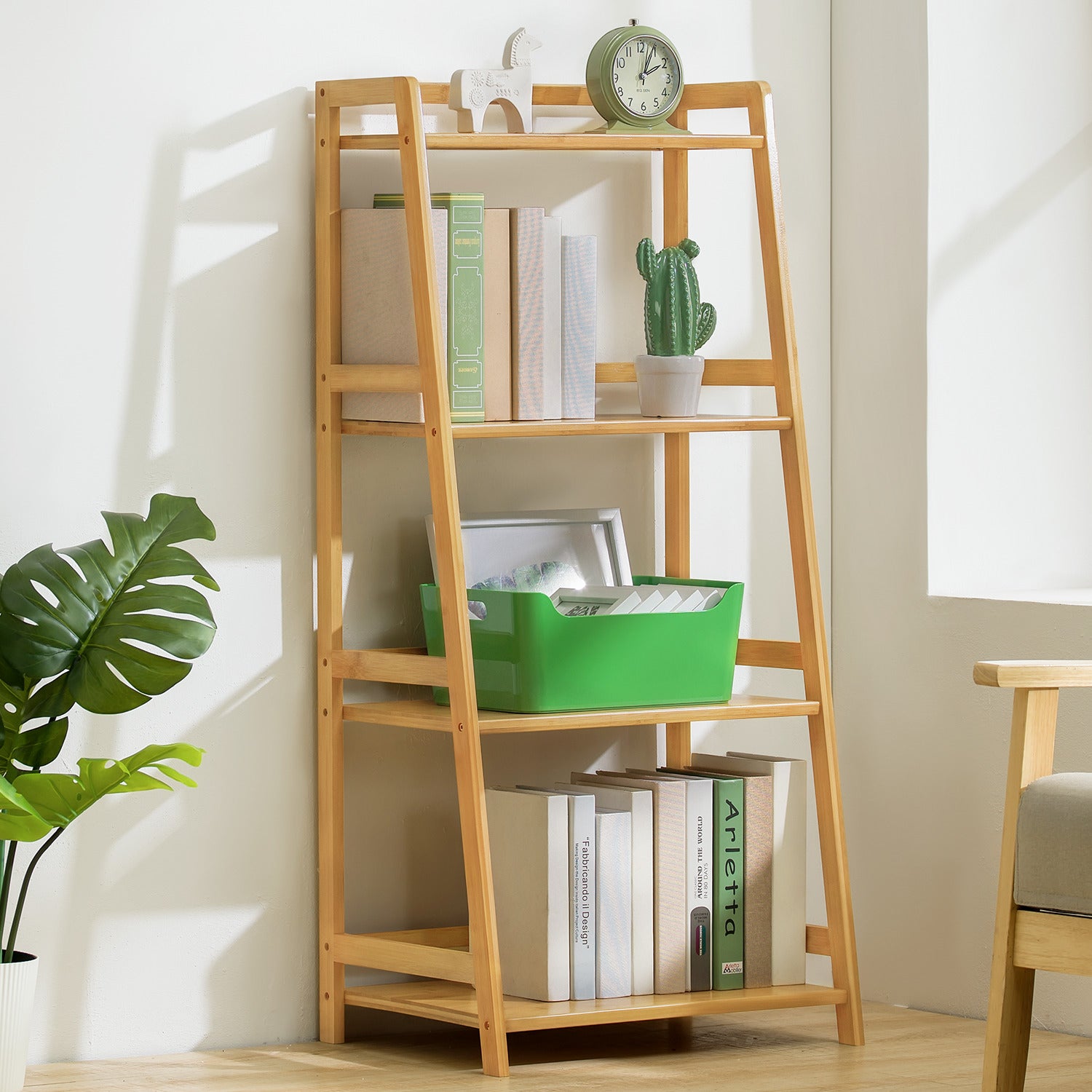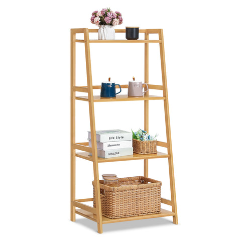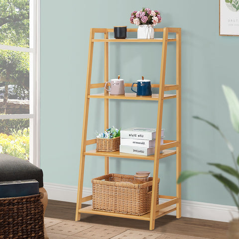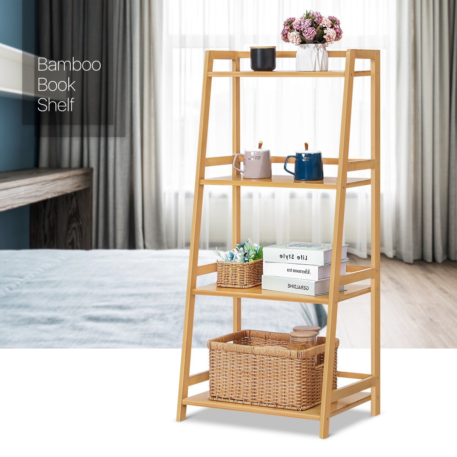 This four-decker trapezoid bookshelf provides an extra platform to collect your books. Premium bamboo in natural surface shows an elegant appearance, with this floor-standing bookshelf you can decorate your room in a personalized way.
