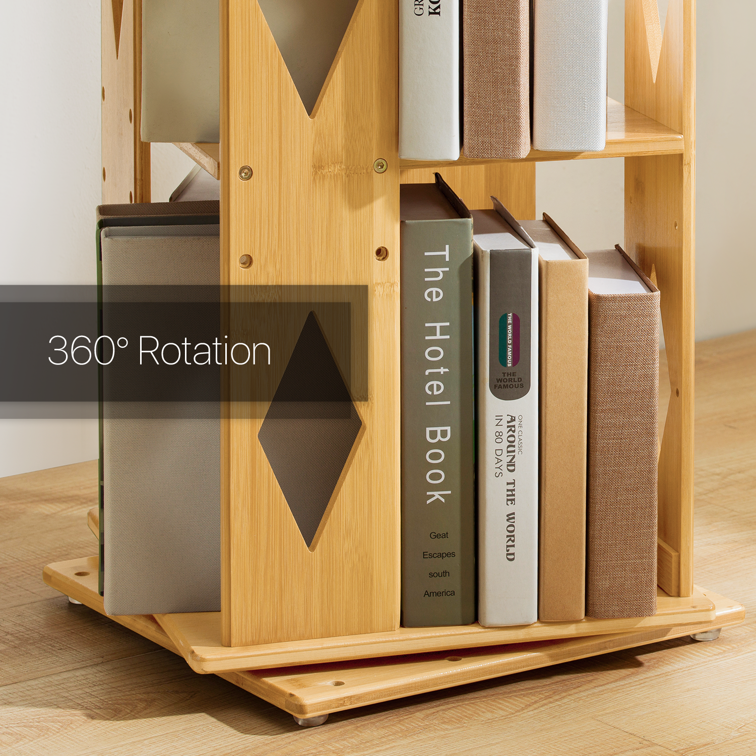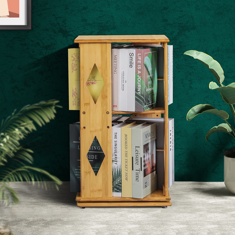 - Revolving Bookcase - The unique design of rotating bookshelf allows you to easily access items from all angles. It is a four-side open bookcase that can house a selection of books on each side.