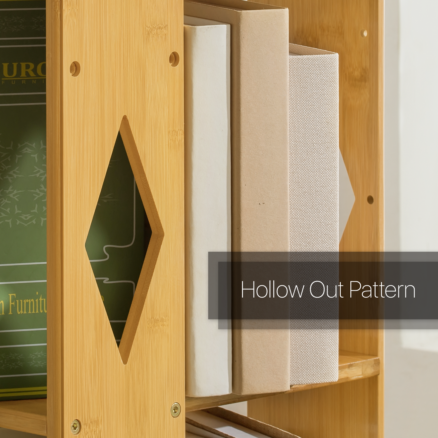 Premium bamboo in natural surface shows an elegant appearance, with this floor-standing bookshelf you can decorate your room in a personalized way. Similar to other bookshelves, this bookshelf in large capacity and reinforced design can let you place your items on it.