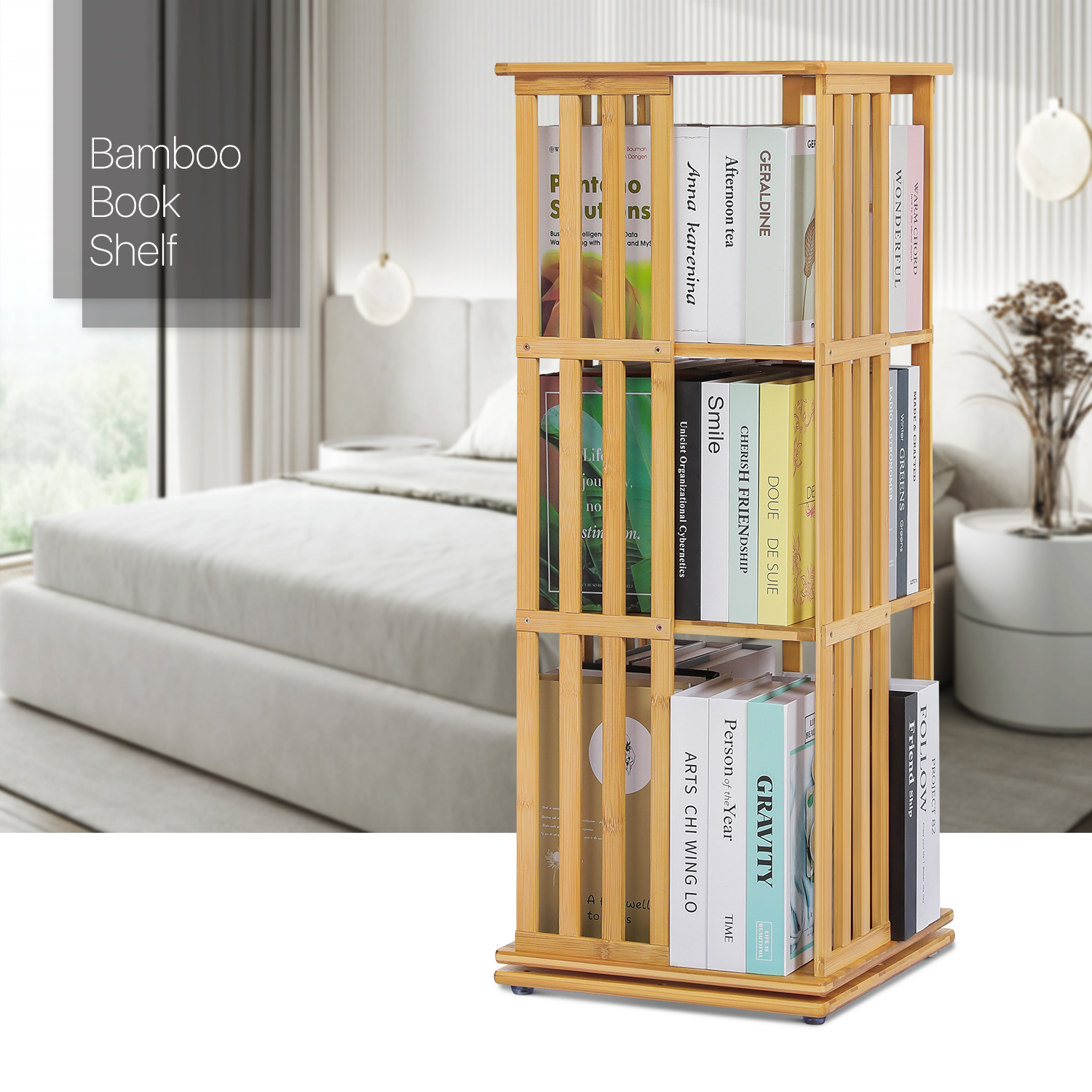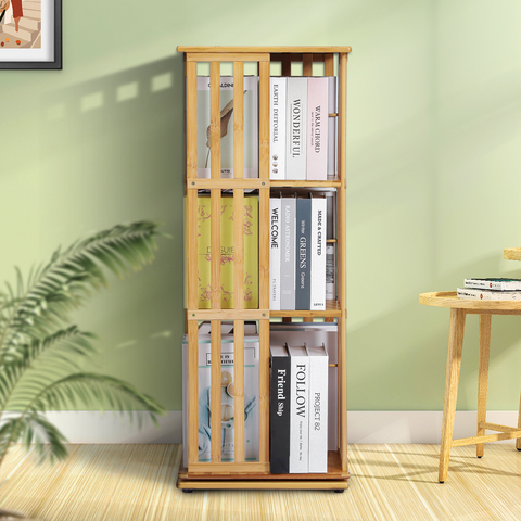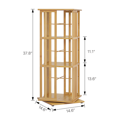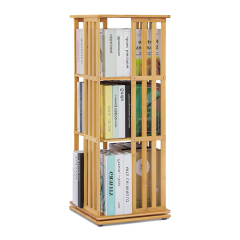 - Revolving Bookcase - The unique design of rotating bookshelf allows you to easily access items from all angles. It is a four-side open bookcase that can house a selection of books on each side.