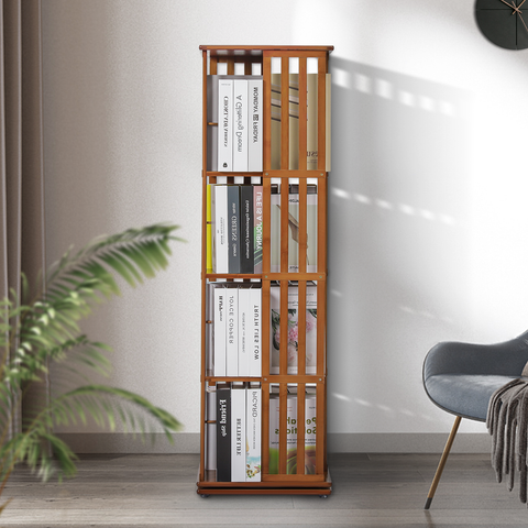 - Revolving Bookcase - The unique design of rotating bookshelf allows you to easily access items from all angles. It is a four-side open bookcase that can house a selection of books on each side.