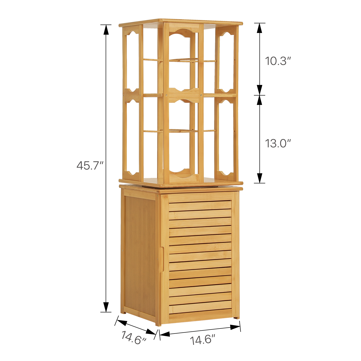 360°Swivel Bookshelf - Oval Hollow Pattern - with Bottom Cabinet Storage - 15" - Natural