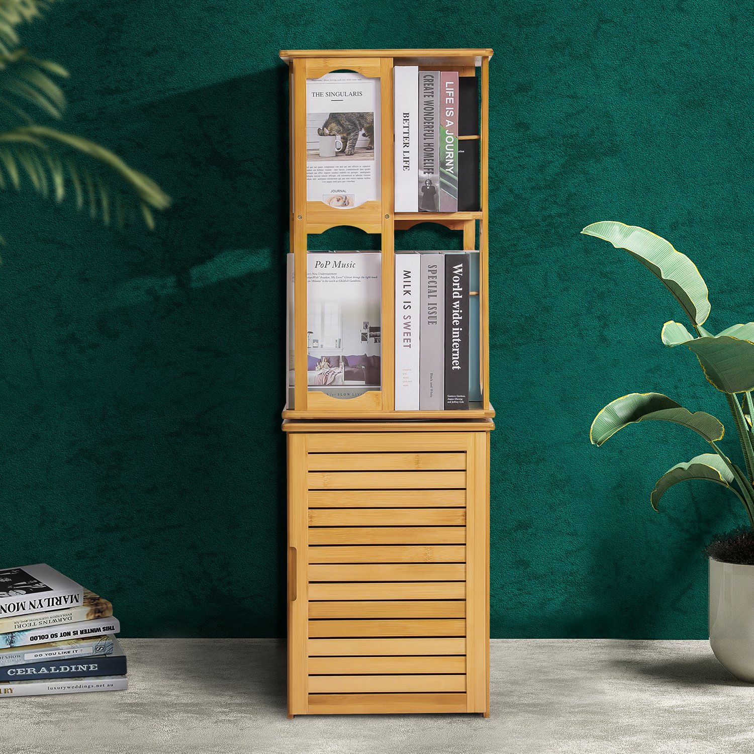 Premium bamboo in natural surface shows an elegant appearance, with this floor-standing bookshelf you can decorate your room in a personalized way