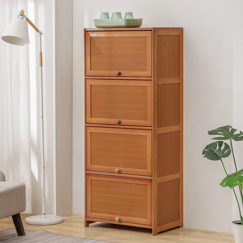 Want to bring order to a messy place and add the beauty of nature to your room? This four-layer bamboo storage cabinet features clean lines and concise style that brings an elegant appearance and classic sense to your home.