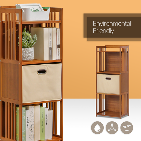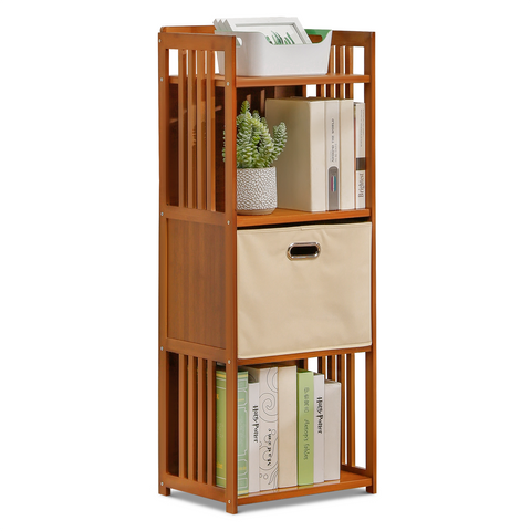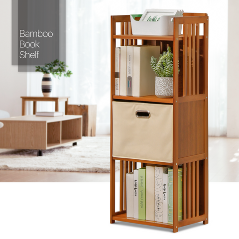 Give your home a fresh look with this high quality bamboo bookshelf. Brown coating surface and clean lines design give your study room an elegant sense. This three-decker shelf provides enough space for your books or daily items. Considering the problem of water-proof and dirt-proof, you can also put your items inside fabric basket.