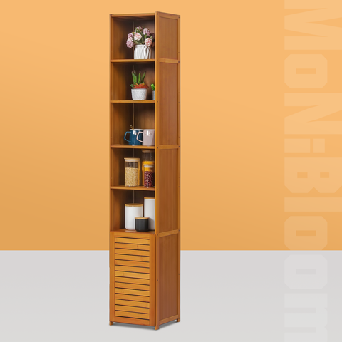 Premium bamboo in natural surface shows an elegant appearance, with this stand bookshelf you can decorate your room in a personalized way