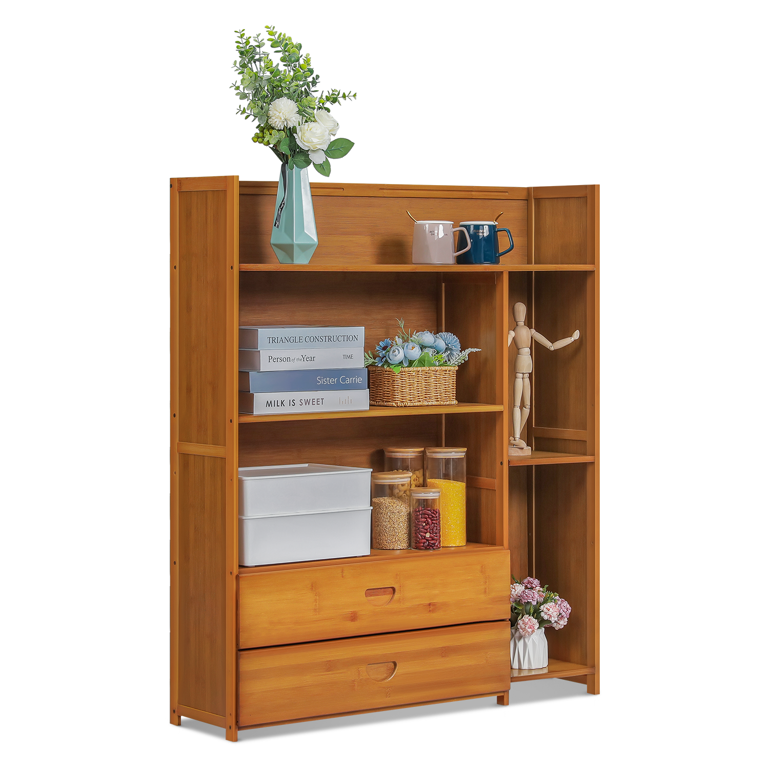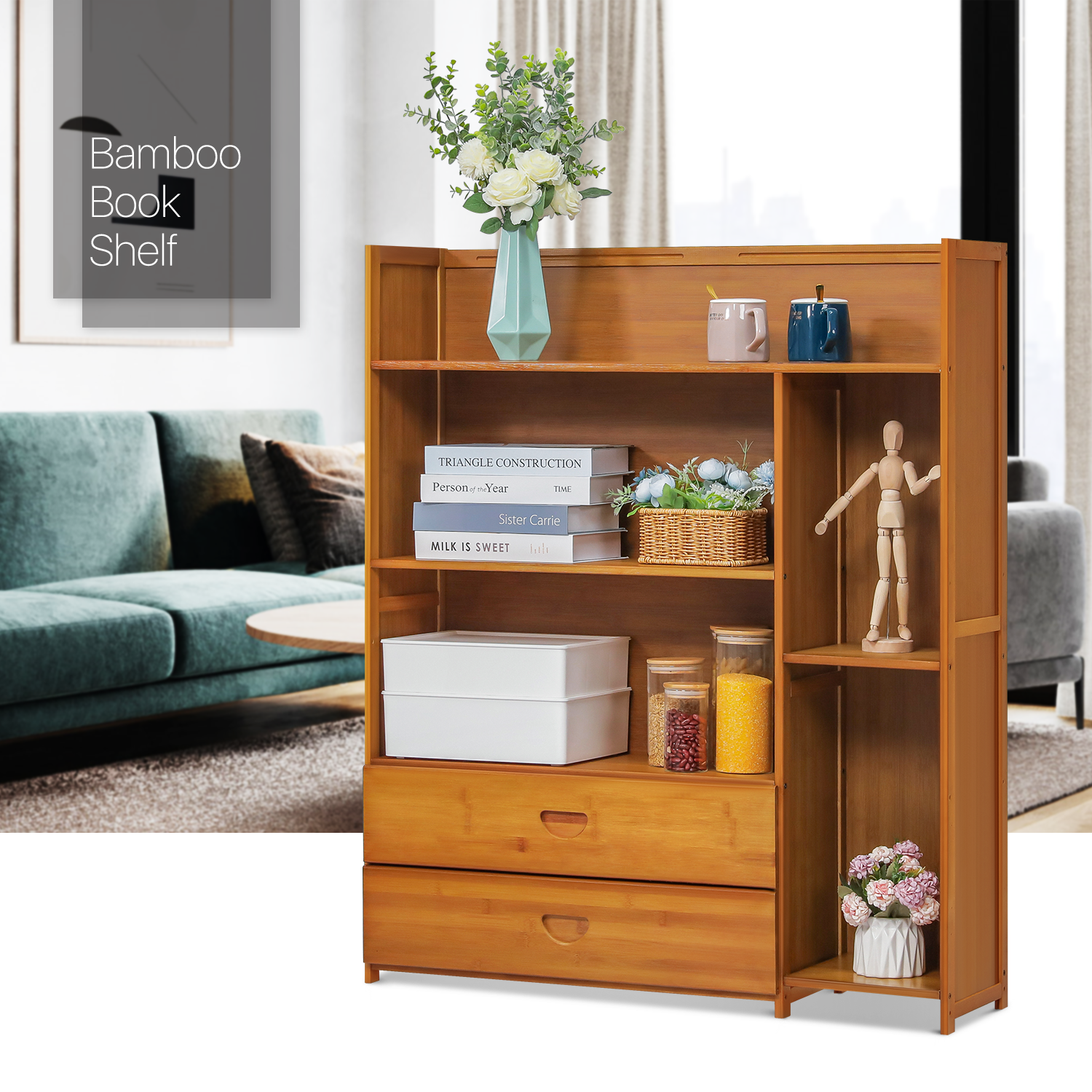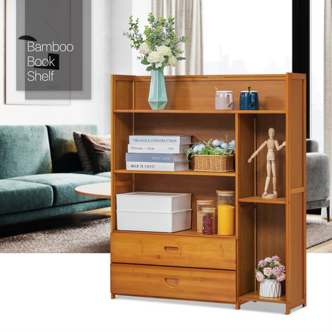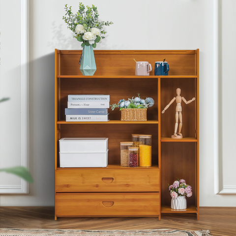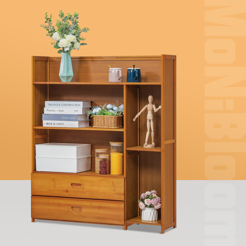 Want to tidy up your living room and have a concise style of view? Just try this bamboo stand shelf. Natural surfaces and clean lines bring you relaxation in an elegant appearance. With its irregular layers design and large capacity, this shelf can contain many daily items like books, cups even some flowers for decoration.