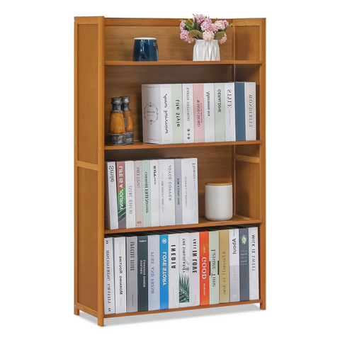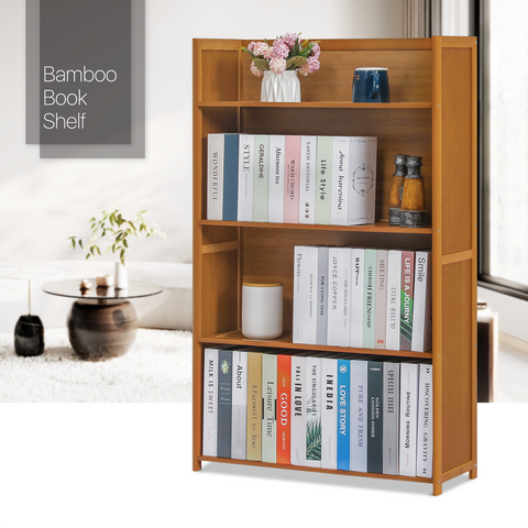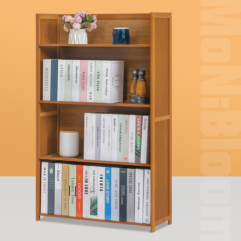 Want to tidy up your living room and have a concise style of view? Just try this four-layer bamboo stand shelf. Natural surfaces and clean lines bring you relaxation in an elegant appearance. With its high quality material and large capacity, this shelf can contain many daily items like books, cups even some flowers for decoration.