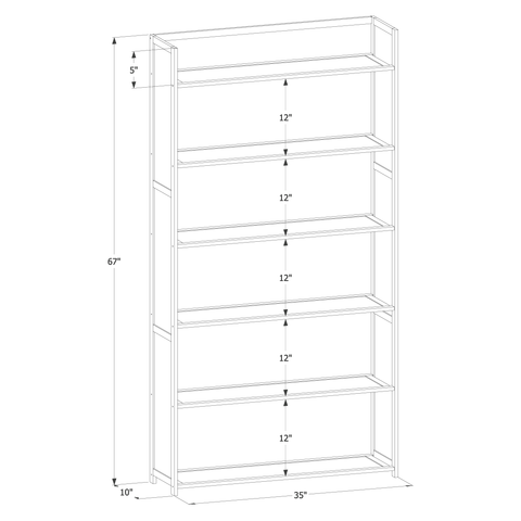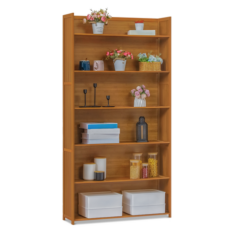 Simplified Multi-Functional Bookshelf - Open Top - 6 Tier - Brown