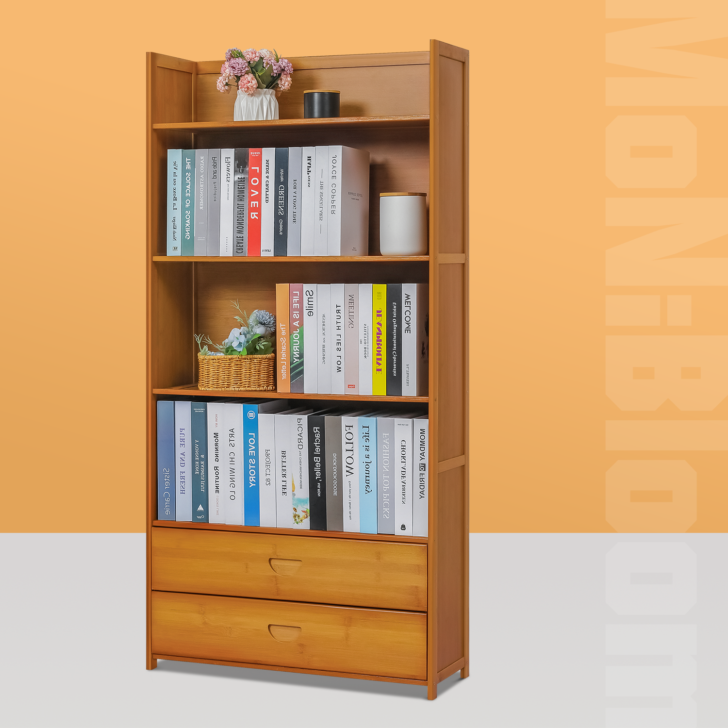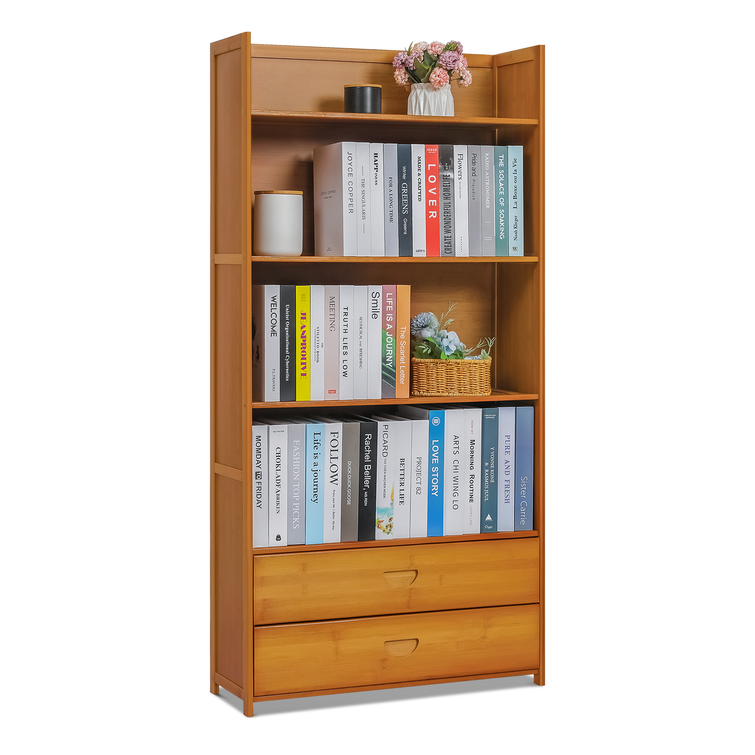 Simplified Multi-Functional Bookshelf - Open Top - with Drawer - 5 Tier - Brown