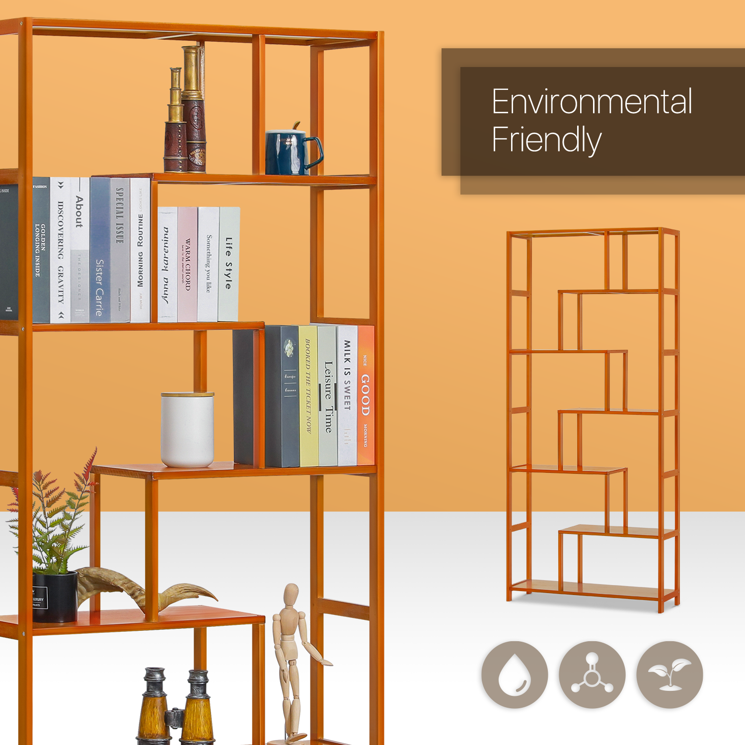 Irregular layers design and its clean lines provide a large capacity and a personalized design. Not only your books, but you can also put some plants for decoration to add green elements to your study room. A piece of practical and beautiful furniture to improve your delight in life.