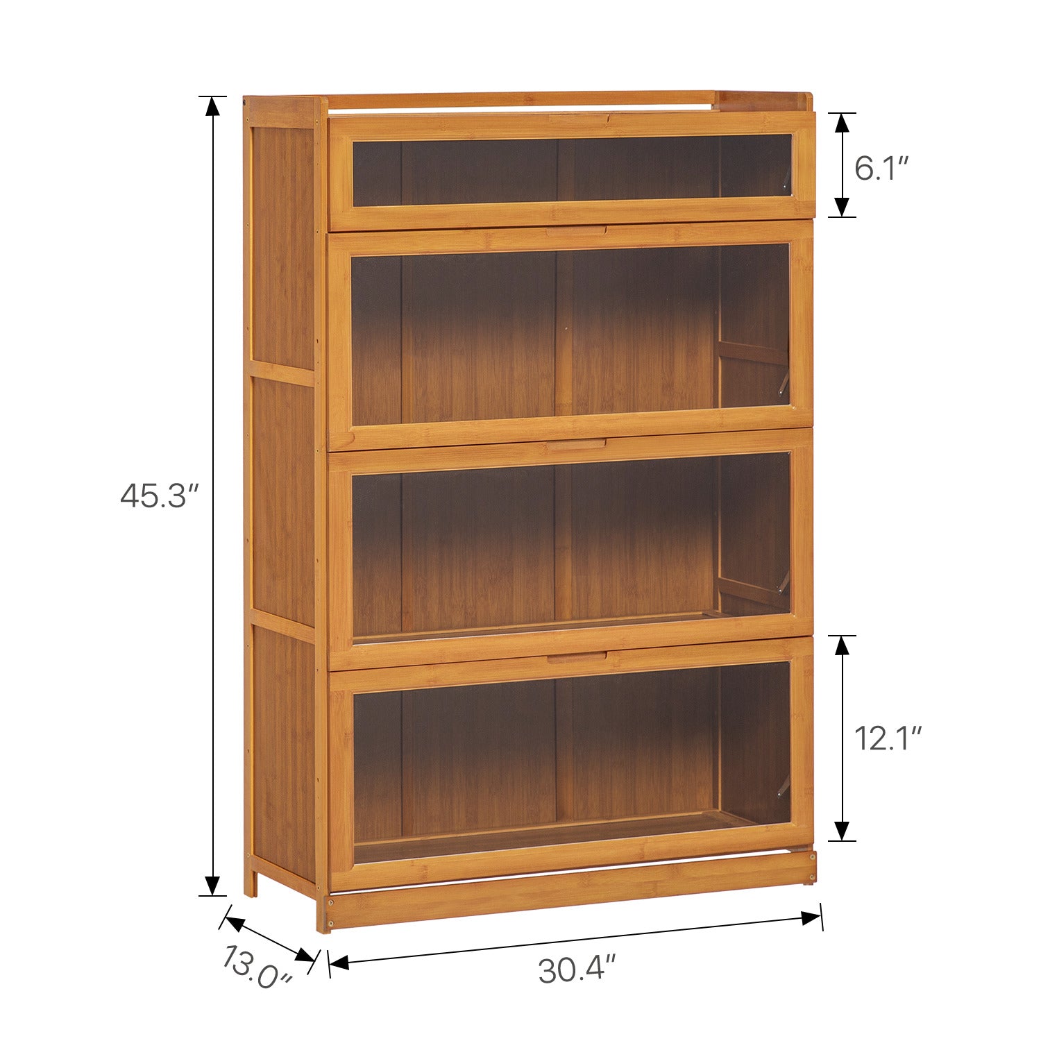 Want to bring order to a messy place and add the beauty of nature to your room? This four-decker bamboo storage cabinet features clean lines and a concise style that brings an elegant appearance and classic sense to your home. The drop-down style Acrylic door takes water-proof and dirt-proof into consideration, creates an enclosed space to store your household items without damage. This see-through design lets you conveniently find the items in the cabinet, you can also show off your favourite accent pieces through this transparent lid.