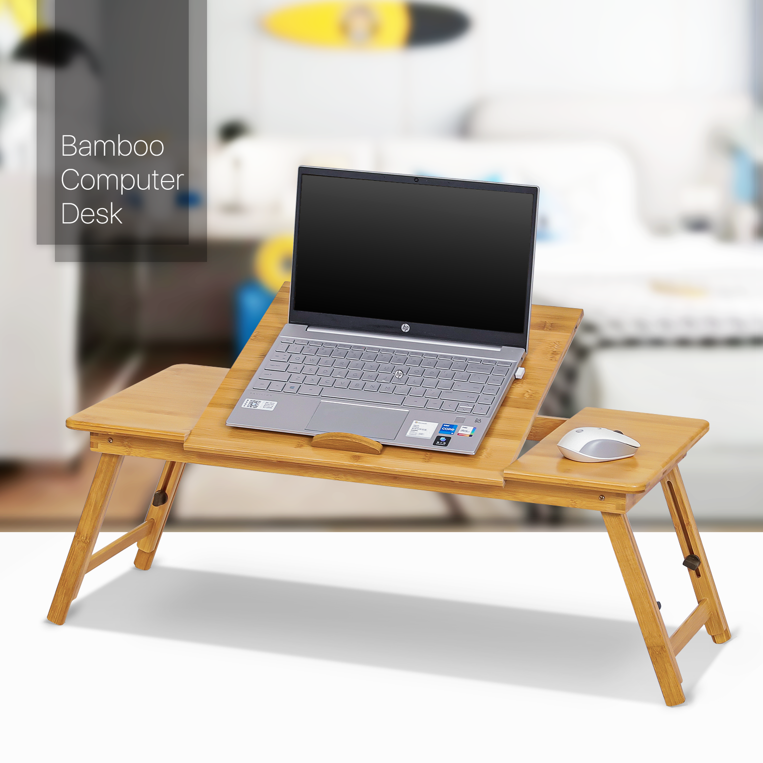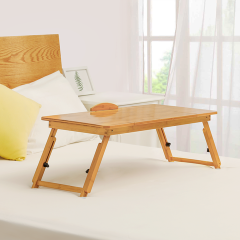 Laptop Desk Bed Table with Tilting Top - Adjustable Height - Natural