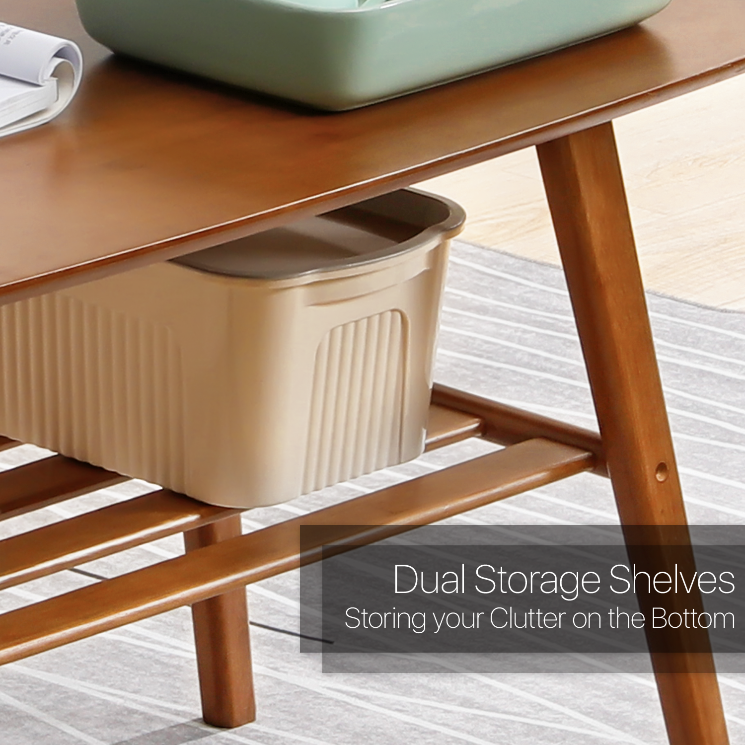 Rectangular Dual Tier Coffee Table - 2 Tiers 39.3", Brown