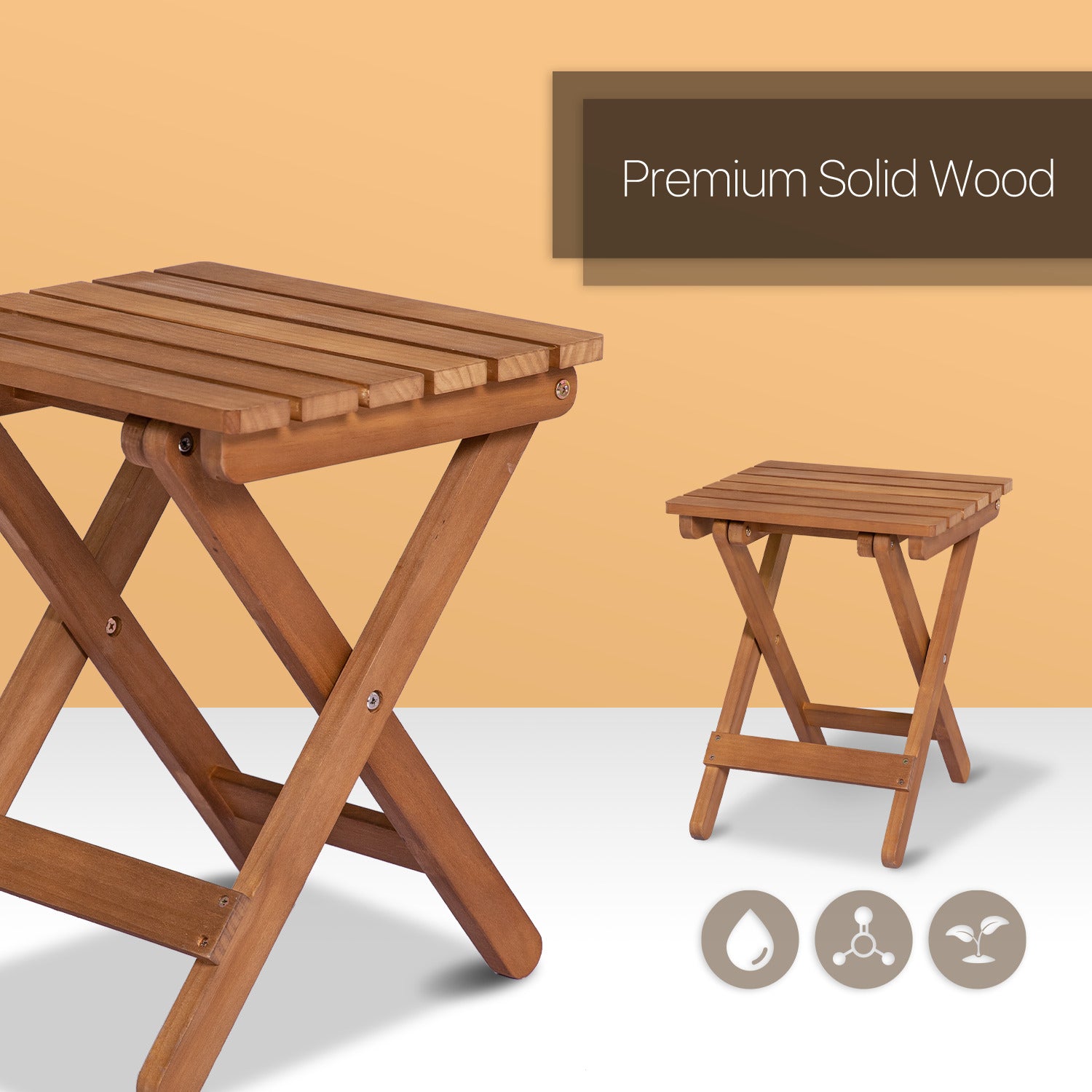 This wooden folding stool is multifunction for sitting or stepping. The folding stool features a solid frame made of wood, making it stable and durable. The horizontal board was added on the feet for the reinforced design to ensure its strong bearing capacity and security when stepping on it. The stool is carefully polished with manual work for easy cleaning and an elegant appearance. This chair can be foldable to save space when not in use.