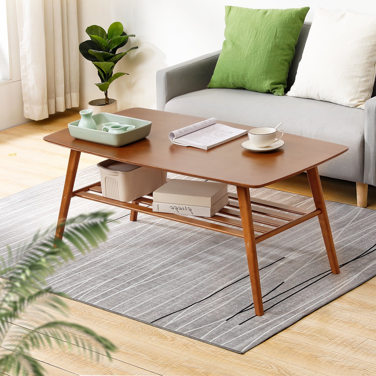 Simple Coffee Table - with Storage Shelf - 48" - Brown